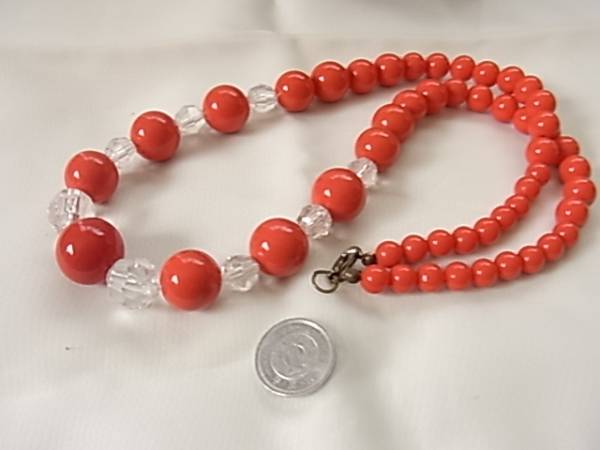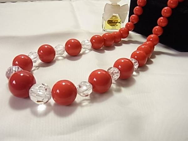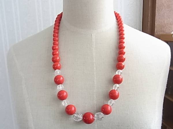 情熱的な赤と鎮静なクリアのボール玉のビーズネックレス▲