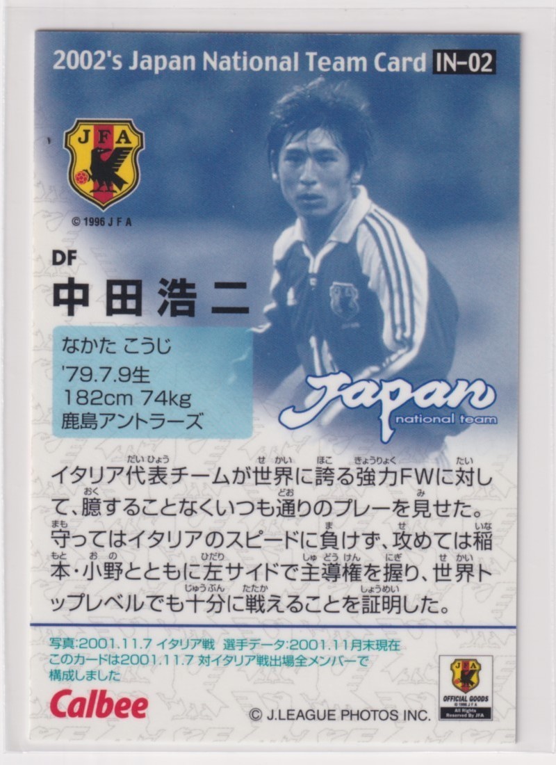 サッカー日本代表チームチップス2002第1弾 IN-02 中田 浩二 DF 鹿島アントラーズ