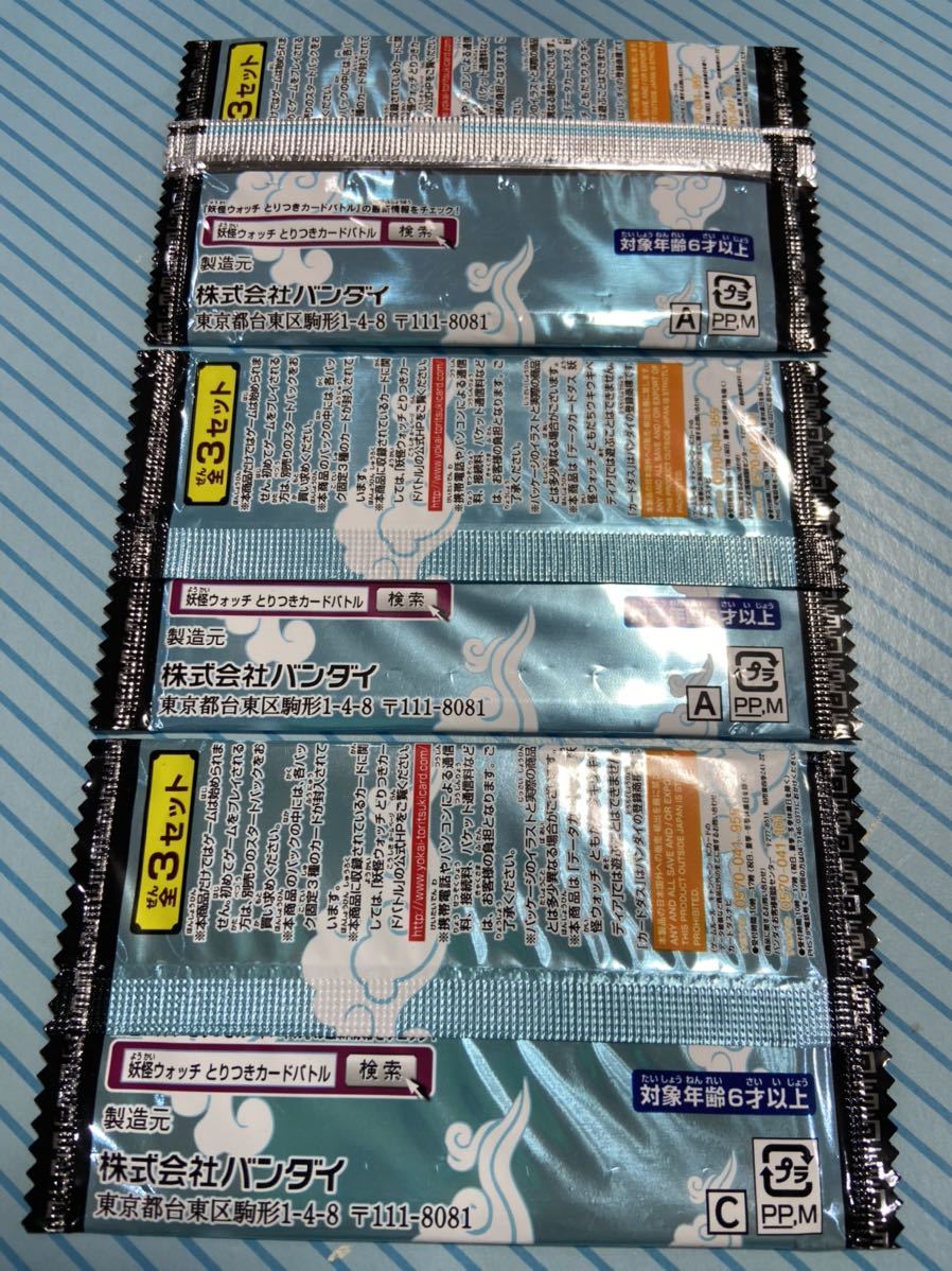 妖怪ウォッチ とりつきカードバトル サントリーオリジナルカードセット A(2パック) C(1パック)の3パックセットです。