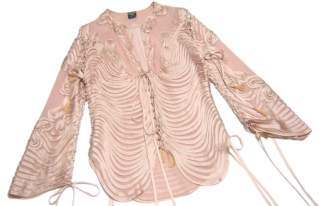Jean Paul GAULTIER FEMME のイタリア製、 コード刺繍シルクドレスブラウスでございます。 透け感あり/伸縮性なし | |