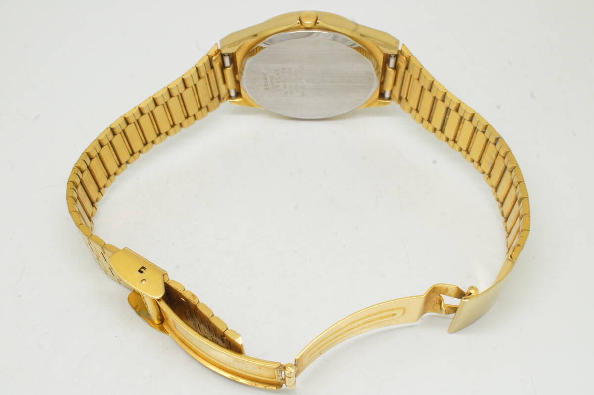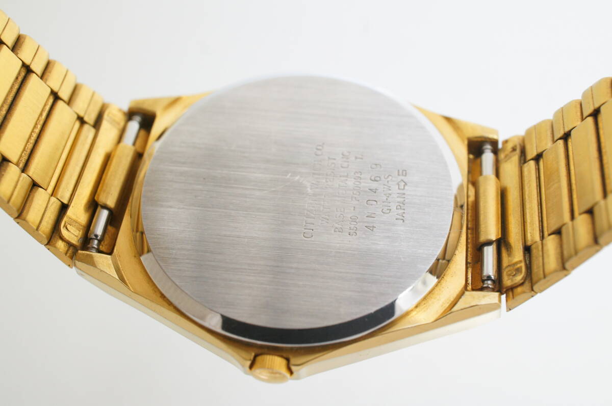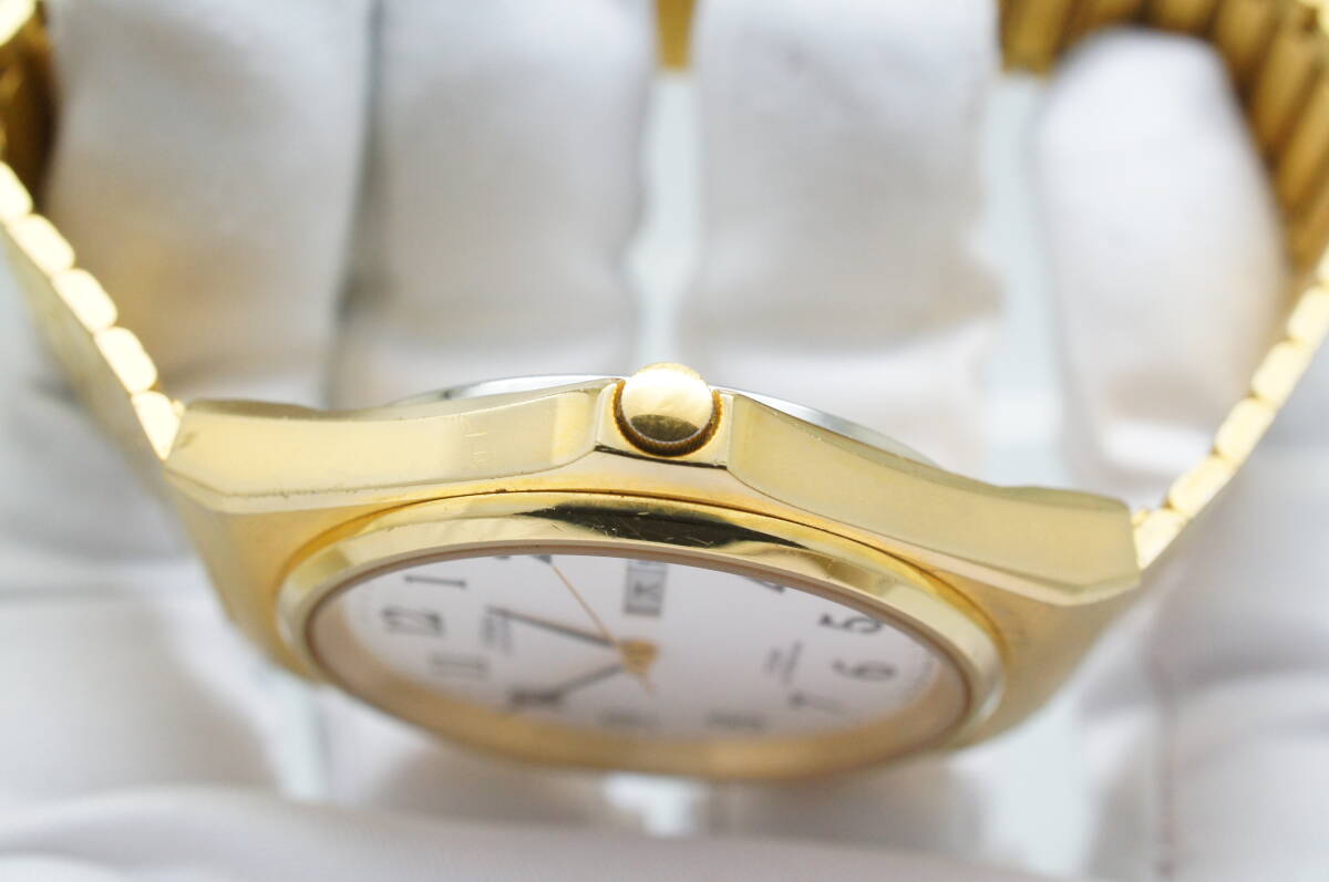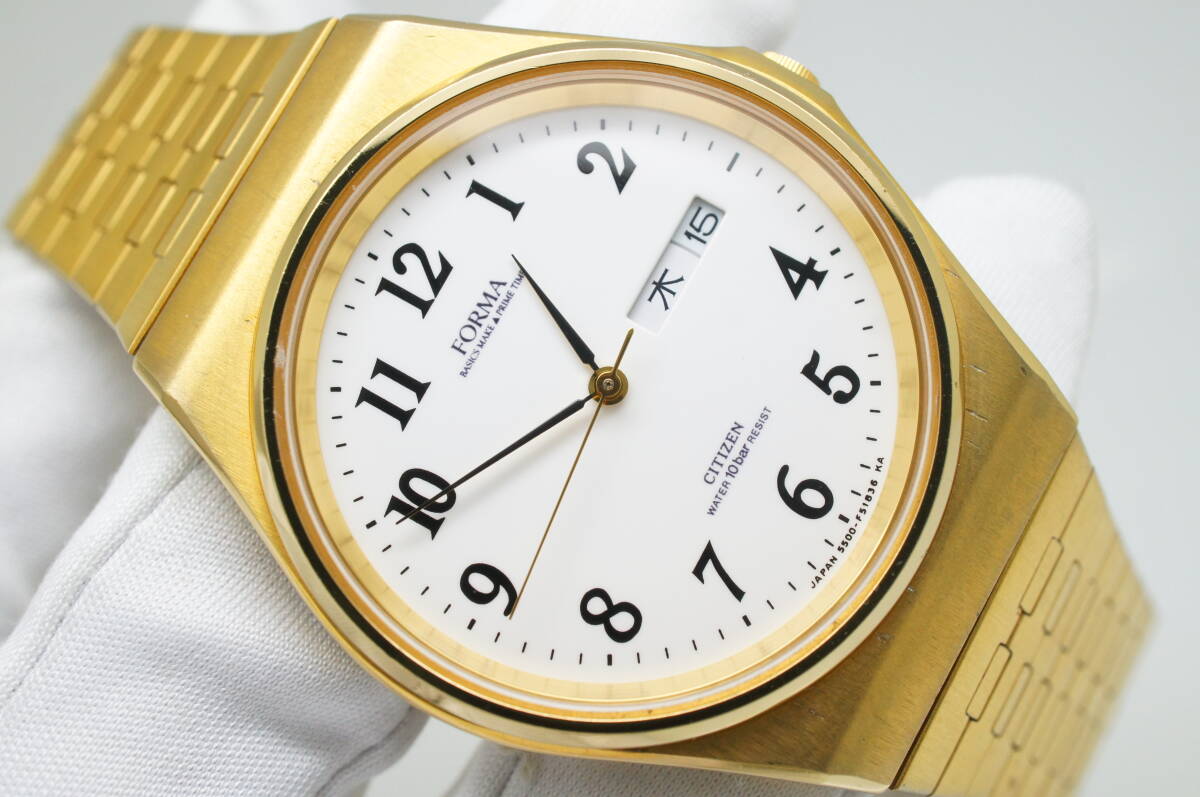 J102●作動良好 CITIZEN シチズン FORMA 5500-F50093 白文字盤 ラウンドケース型 デイデイト メンズ腕時計 ゴールド金 お洒落 クォーツ