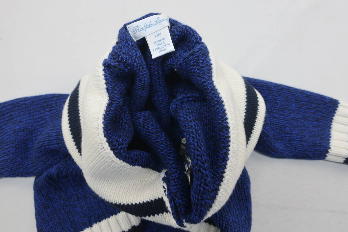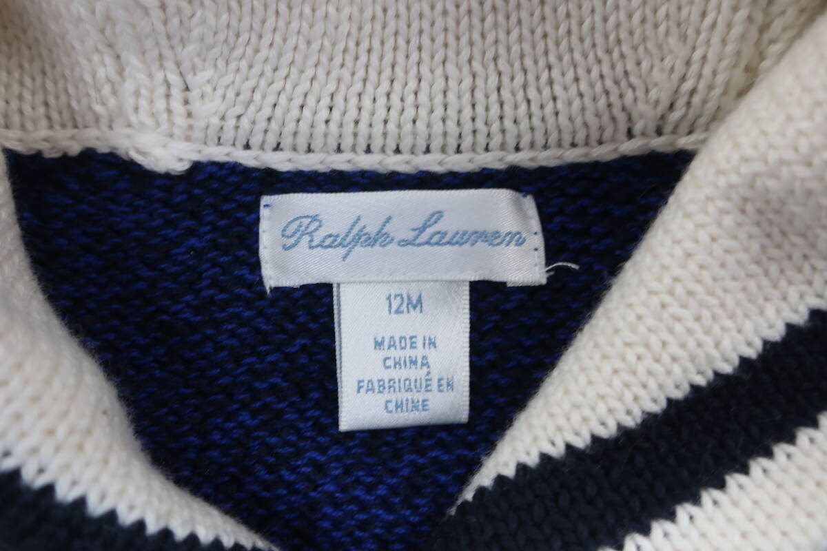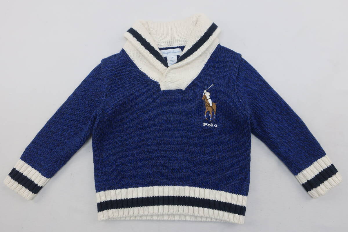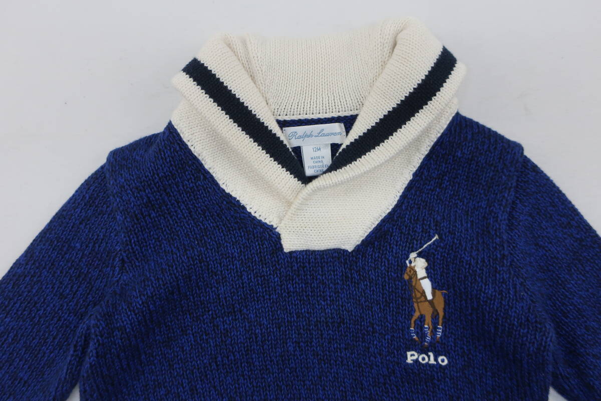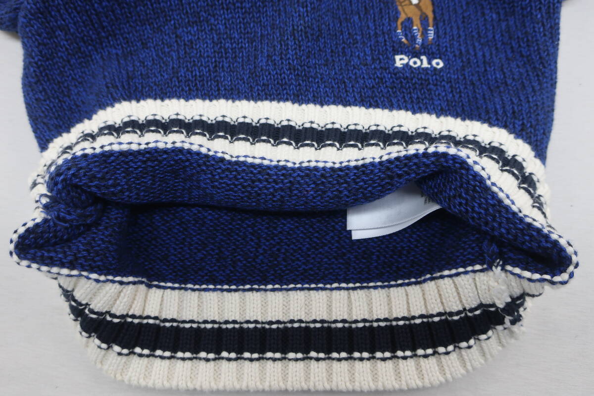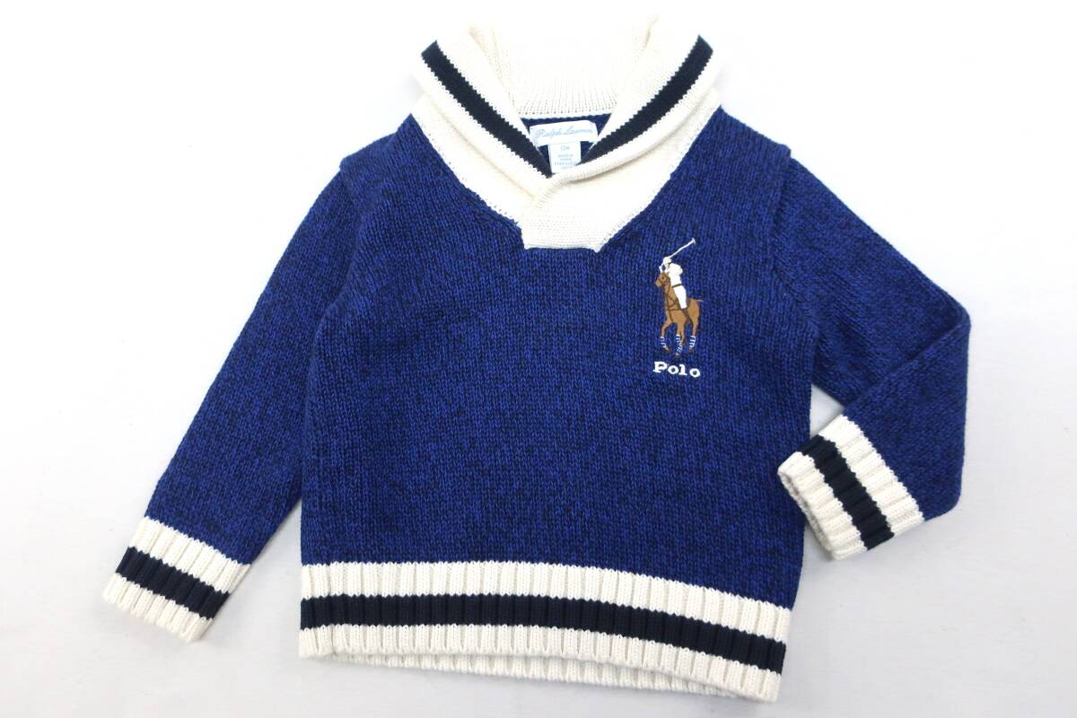 【送900円】2044 Ralph Lauren ラルフローレン キッズ コットンニット セーター ロングスリーブ 長袖 ロゴ刺繍 ブルー 12M