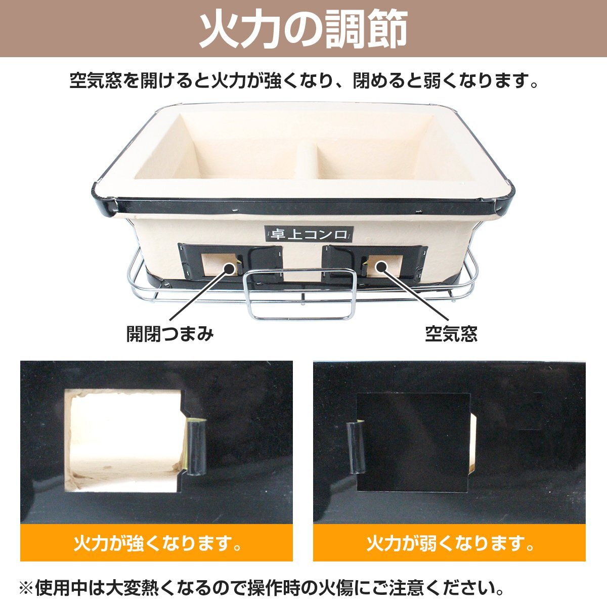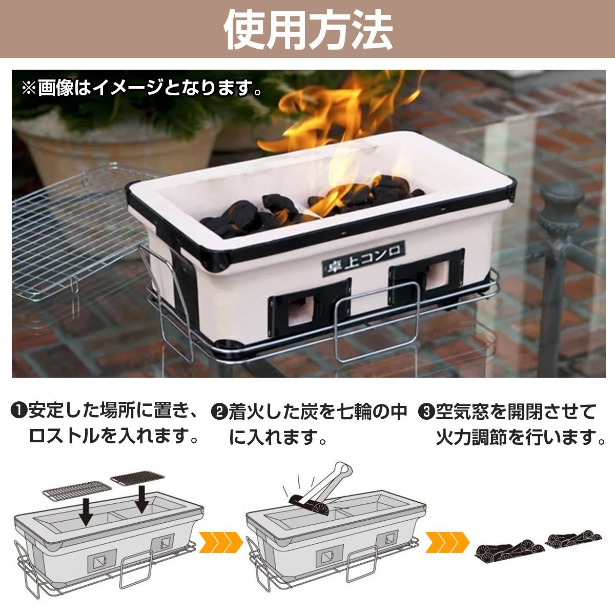 コンパクト 七輪 炭火焼 卓上七輪 卓上コンロ 珪藻土 ミニ七輪 家庭用七輪 小型 角型 四角 魚焼きグリル 焼肉 BBQ 2人/3人 用