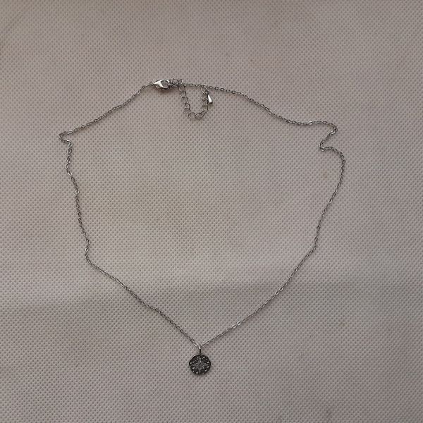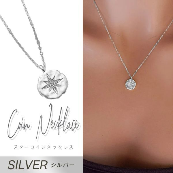 ジルコニアの星のモチーフがコインパーツに施された、個性的なデザインのネックレスです?