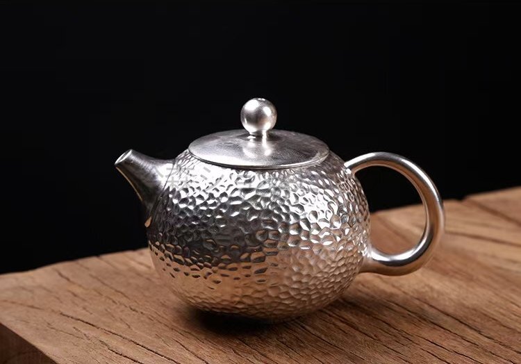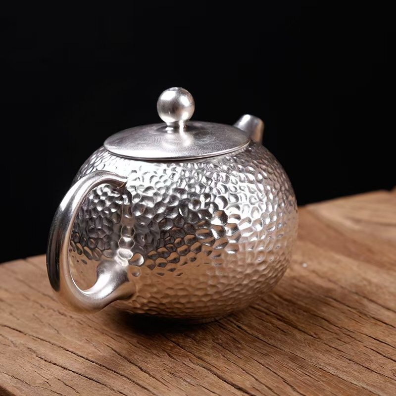 陶磁器銀錘紋999純銀西施急須茶器家庭用足銀浸茶ポットボール穴ポット手作り銀ポット