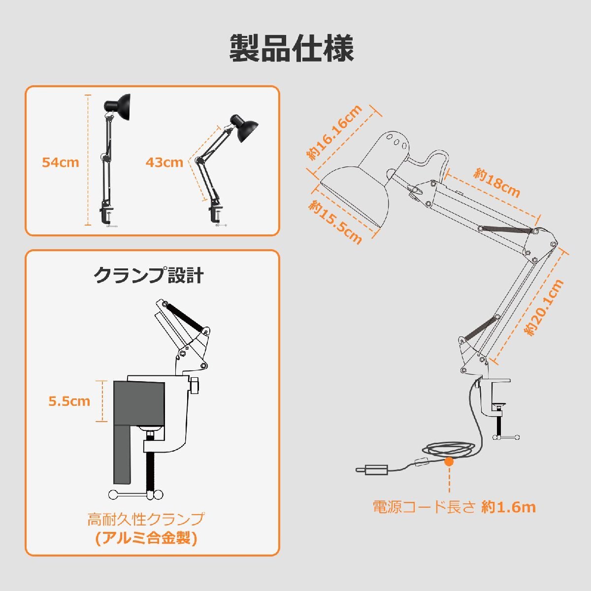 【特価】 アームスタンド クランプ E26口金 スタンド電気 Lepro スイング デスクライト アームライト led