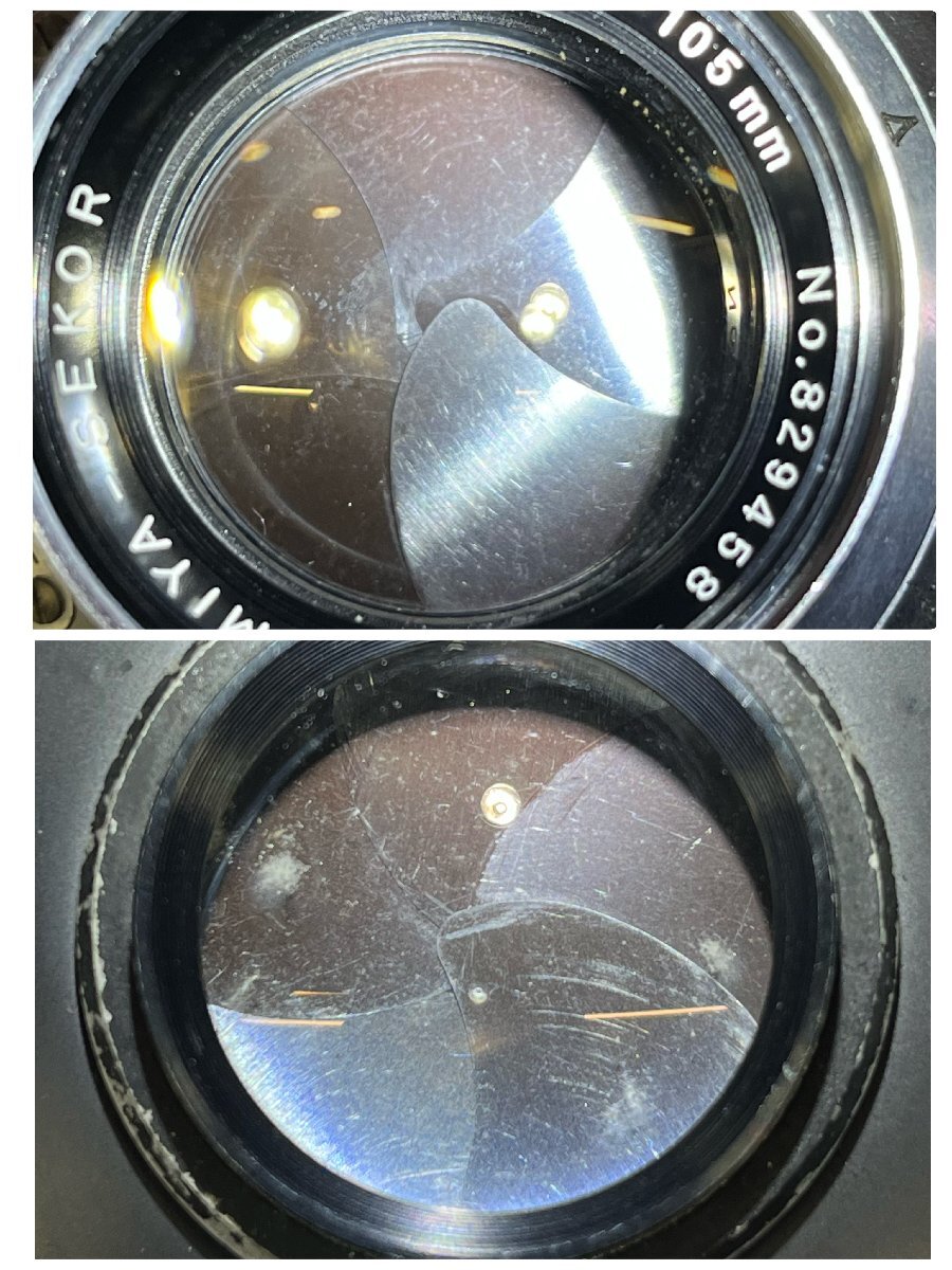 | 商品説明 | ■外観 ・汚れ、傷あり ・蛇腹:破れなし ※外観の状態はあくまで目視確認に基づく主観です。 写真をご参照ください。 ■光学の状態 ・上前玉:チリ/カビ/薄曇り ・上後玉:チリ/カビ/傷 ・上レンズ内部:チリ/カビ/バルサム切れ ・下前玉:チリ/カビ/薄曇り/傷 ・下後玉:チリ/カビ/傷 ・下レンズ内部:チリ/カビ/薄曇り ・絞り羽根:動作良好/油じみ汚れあり ・シャッター羽根:油じみ ・ファインダー:チリ/カビ/曇り ■動作確認 ・シャッター:動作確認済み ・シャッター速度:全速変化確認済み(※シャッター羽根の油じみが酷く、少し遅れてシャッターが切れる事があります) ・フィルム巻き上げ/巻き戻し:未確認 ※フィルムを装填しての実写確認は行っておりません。 ■モルト・電池室 ・モルト:劣化あり ■付属品 ・写真に写っているものがすべてです。 ※フィルムや電池などは付属していません。 |