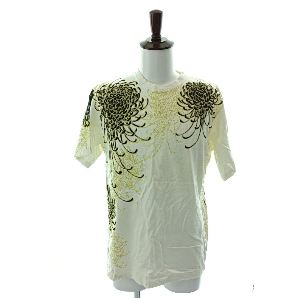 | 華鳥風月 和柄 半袖 クルーネック Tシャツ XLサイズ 白 黄 般若 華 刺繍 丸首 メンズ カジュアル ファッション トップス 現状 中古 |