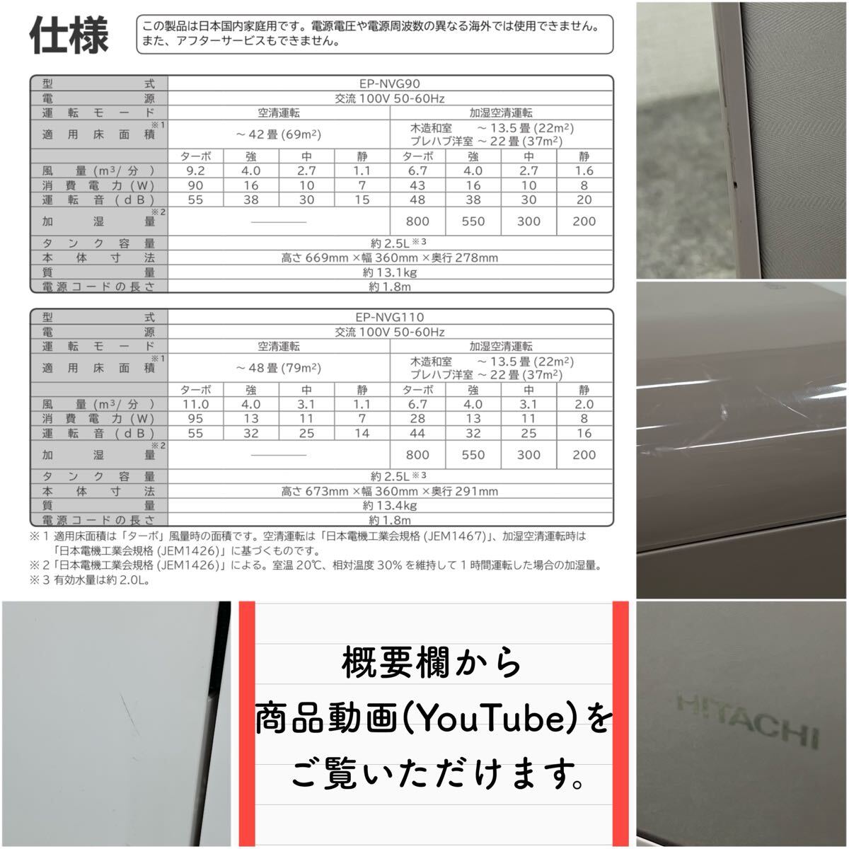 □ HITACHI 日立 加湿空気清浄機 クリエア EP-NVG90 シャンパンゴールド 2023年 空気清浄機 フィルター美品 動作確認済み □25102702Y