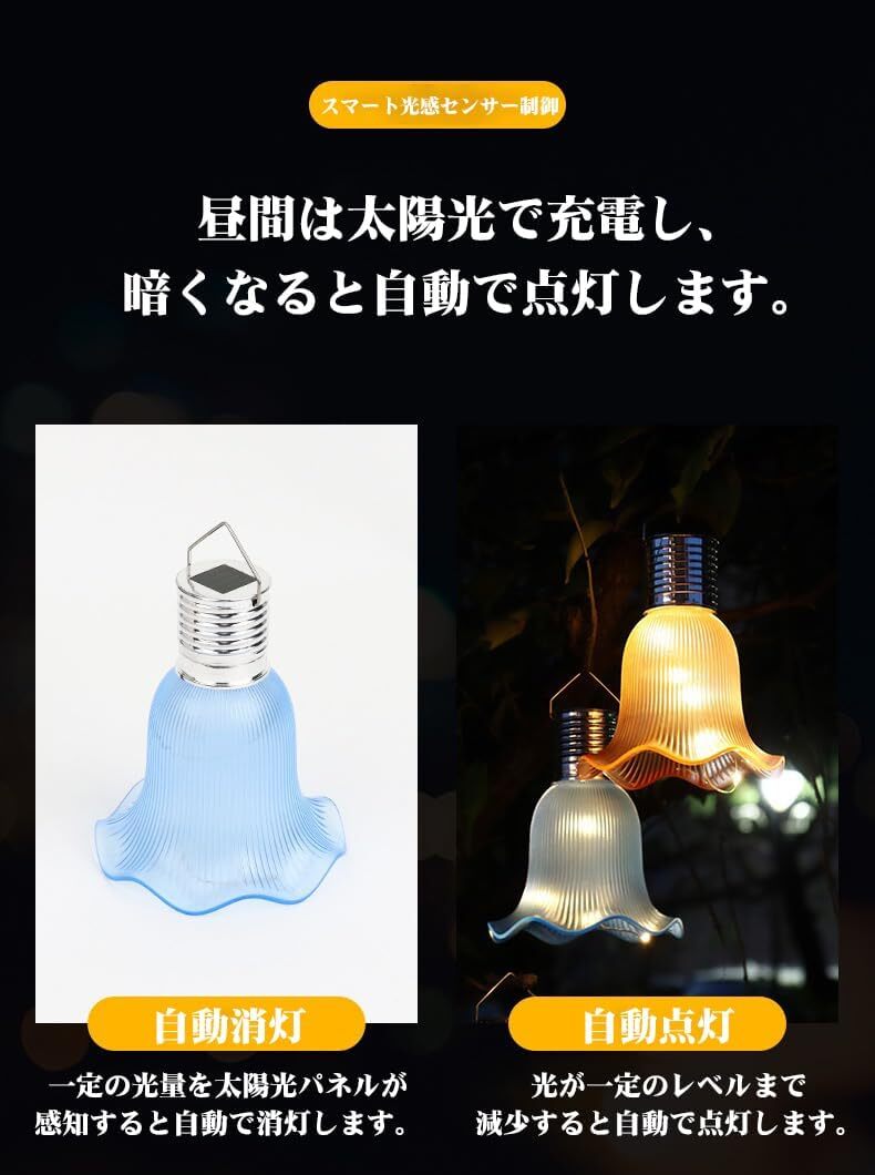 ソーラー充電&自動点灯:日中は自動充電、夜になると自動点灯