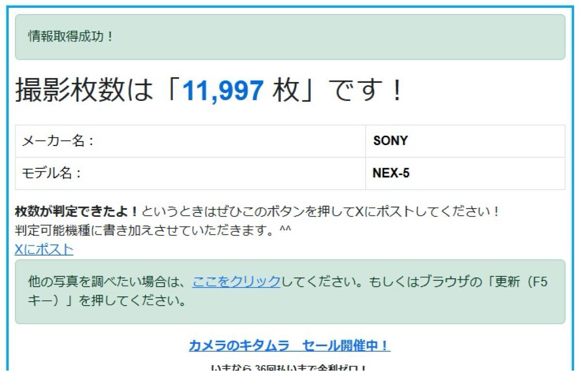ショット数の確認の画像を添付していますが、撮影テストなどで多少増えていると思います。(増えても10枚程度)