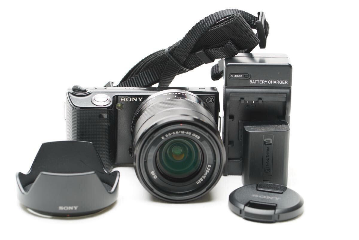 動作品 NEX-5 SEL1855 (E18-55mm F3.5-5.6 OSS) セット SONY シャッター回数約12,000回 カラー:本体レンズともブラック NCNRで