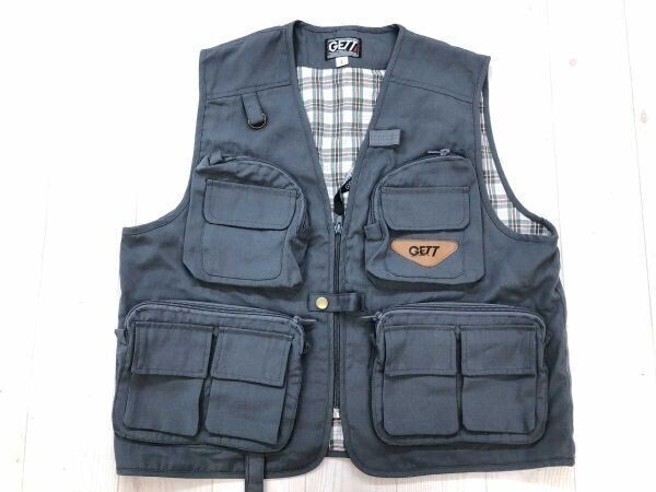 ゲット GETT レトロ オールド アメカジ アウトドア レジャー 釣り フィッシング ワーク ベスト メンズ コットン混合 L グレー です。