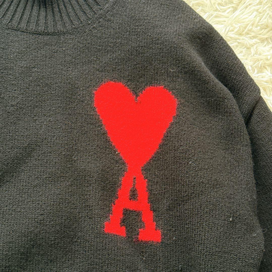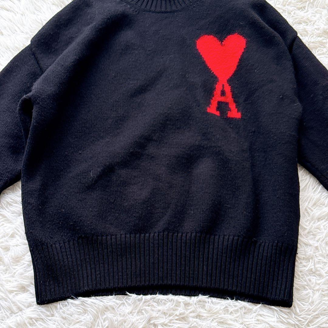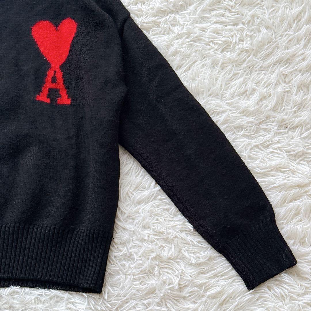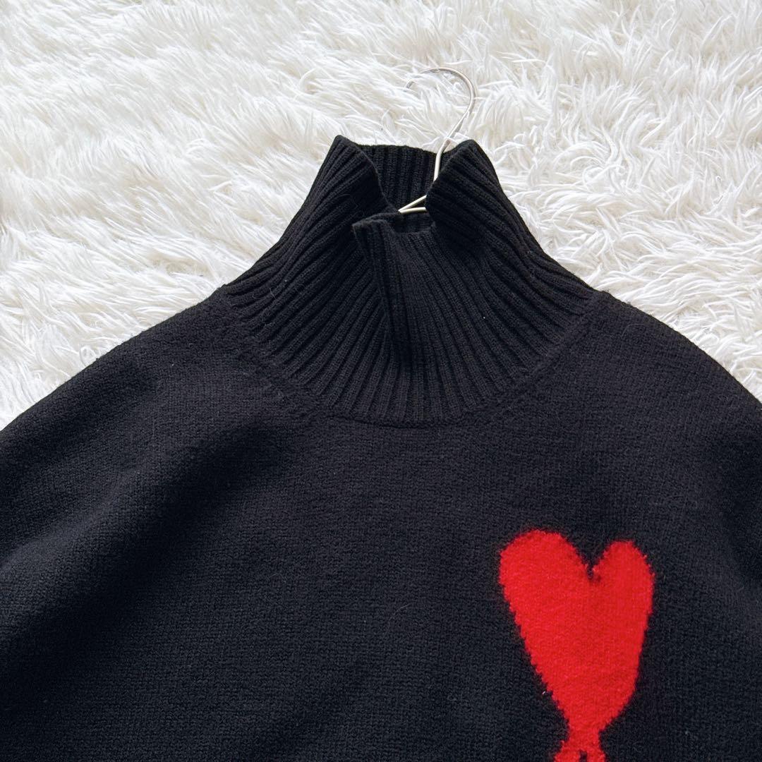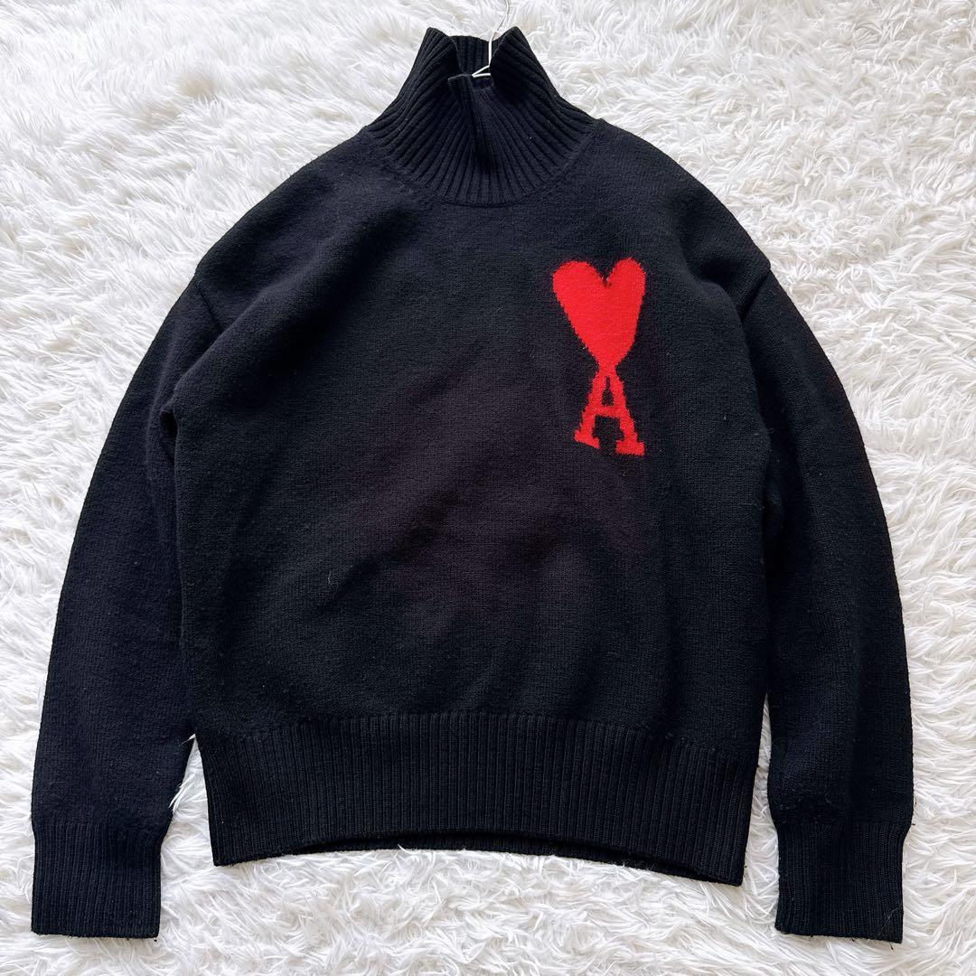 ami paris アミパリス ハートA ニット セーター タートル タートルネック ハイネック ウール100% ブラック レッド メンズS オーバーサイズ フレンチモード カジュアル モード系 ストリート フレンチブランド ハイブランド 美品 定番 人気モデル 秋冬 正規品