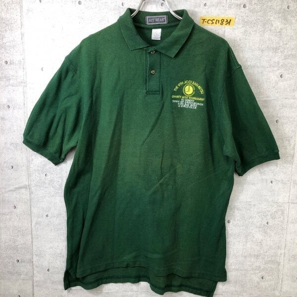 HIT WEAR メンズ ゴルフ刺繍 鹿の子 半袖ポロシャツ L 緑 です。