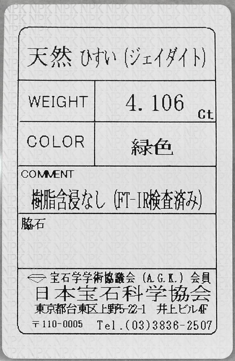 天然翡翠(ジェダイト)ナチュラル:4.106カラット(刻印あり)