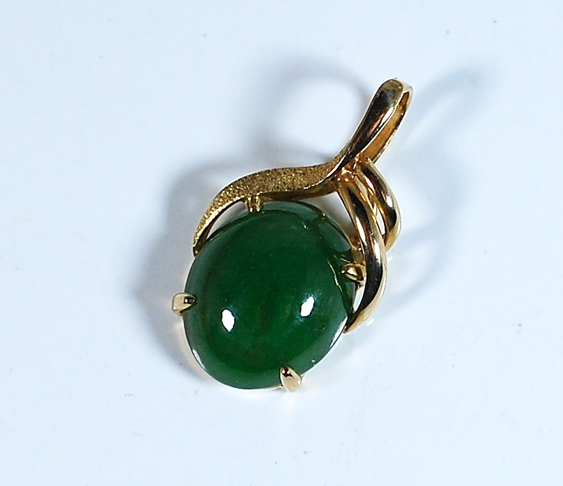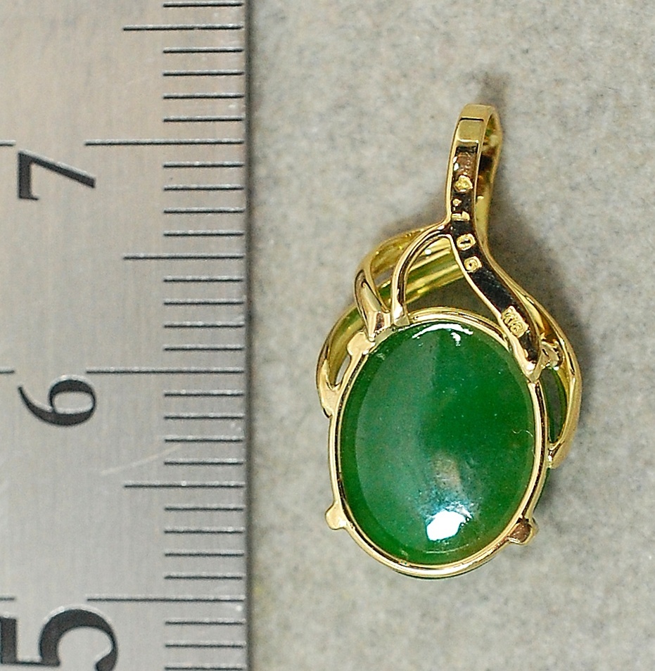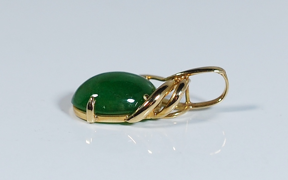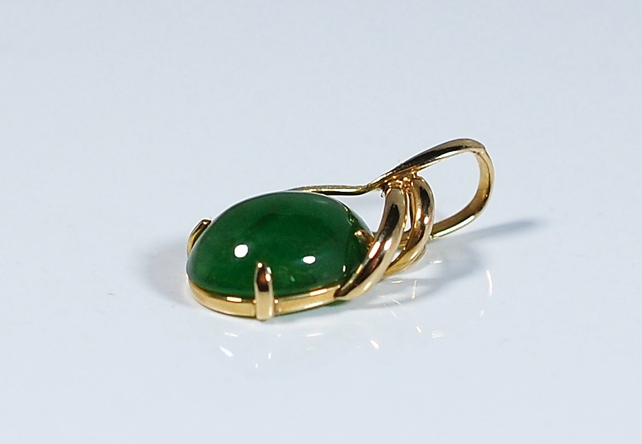 100~ソ付K18ハンドメイド枠付樹脂含浸なし色艶照り透明感綺麗!天然翡翠4.106ct20.5×11.3㍉全長20.51.7PT