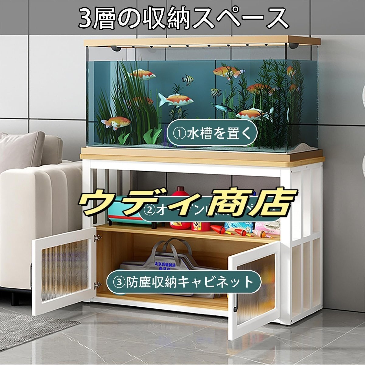 多用途で様々なシーンで活躍:魚缸架、カメタンク台、ソファーサイドテーブル、コレクション展示台、雑物収納棚など、様々な用途に使用できます。家庭のリビングルーム、オフィス、ホテルのロビー、店舗など、収納機能とデザイン性を兼ね備えたアイテムです。?収納機能豊富で整理がスムーズ:上部は水族箱やカメタンクを置くのに最適で、中間のオープンスペースでは本や装飾品、植物を陳列できます。下部の大容量収納庫は防塵・防湿性能に優れ、雑物や水槽用品をきれいに収納できます。収納領域が明確に分かれているので、部屋を常に整然と保てます。?製品名:水槽置き台/水槽スタンド 製品材質:プレート+スチールフレーム製品の色:ホワイト , ホワイト 黑 , ウォールナット 白 , ウォールナット 黑 , グレー 白 , グレー 黑製品サイズ:60x30x70cm , 60x35x70cm , 60x40x70cm , 60x45x70cm , 65x35x70cm , 65x40x70cm , 65x45x70cm , 70x40x70cm , 70x45x70cm , 80x40x70cm , 80x45x70cm , 90x40x70cm , 90x45x70cm , 100x40x70cm , 100x45x70cm , 100x50x70cm , 120x40x70cm , 120x45x70cm , 120x50x70cmパッケージの詳細水槽棚×1ご注意ください:1. 手作業による計測のため、多少の誤差が生じる場合があります。実際の商品を参考にしてください。2. 実際の商品の色は画面上の色と多少異なる場合があります。実際の商品を参考にしてください。3. 本製品には水槽スタンドのみが含まれ、水槽やその他の装飾品は含まれません。弊社製品についてご質問がございましたら、お気軽にお問い合わせください。