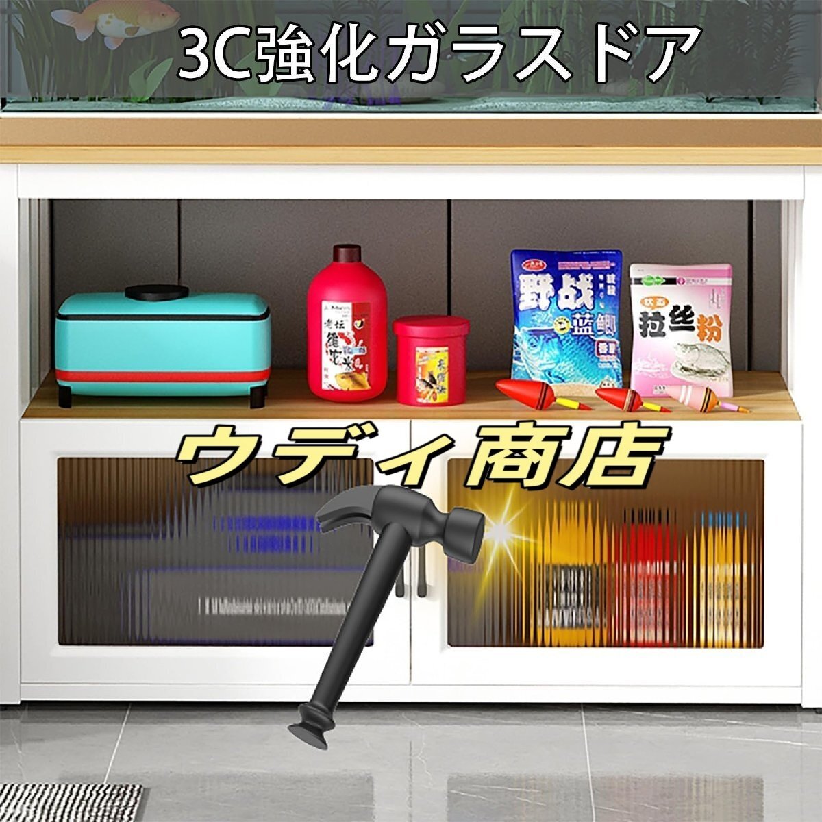 多様化した収納のための3層仕切り:1階は水槽専用、2階のオープン収納スペースは緑の植物や装飾品を置くのに使用でき、3階の防塵収納キャビネットは雑貨を保管するのに使用できます。広々としたカウンタートップと配慮の行き届いたガードレールのデザインにより、物の落下を防ぎ、美しさと実用性を兼ね備えています。
