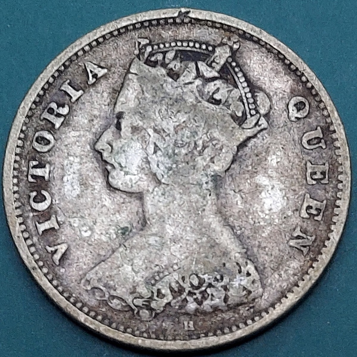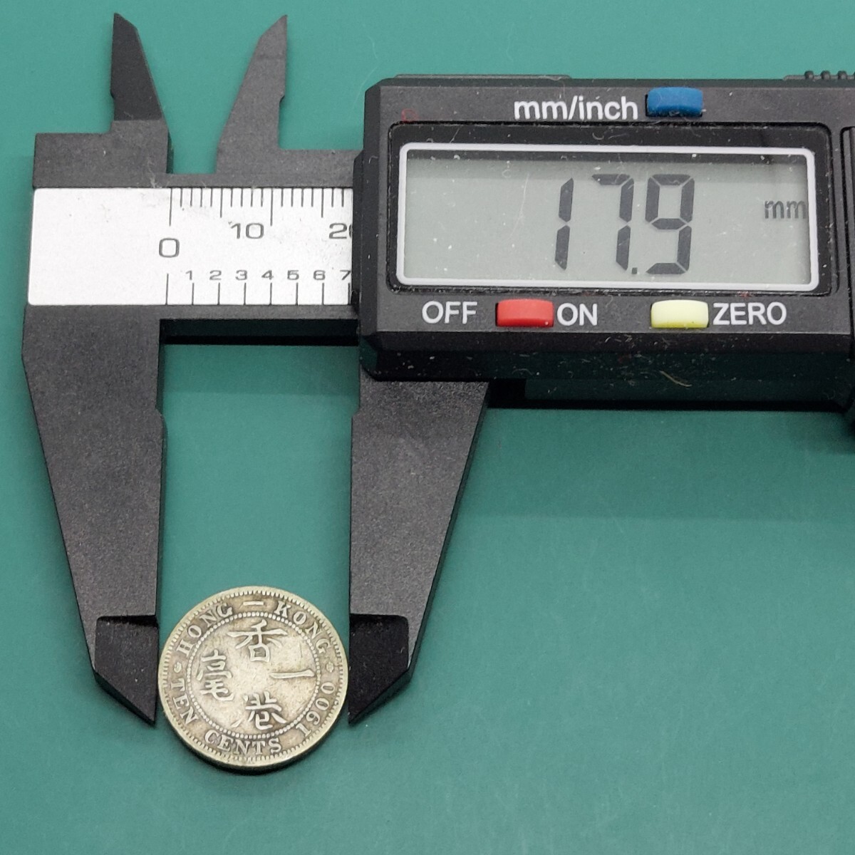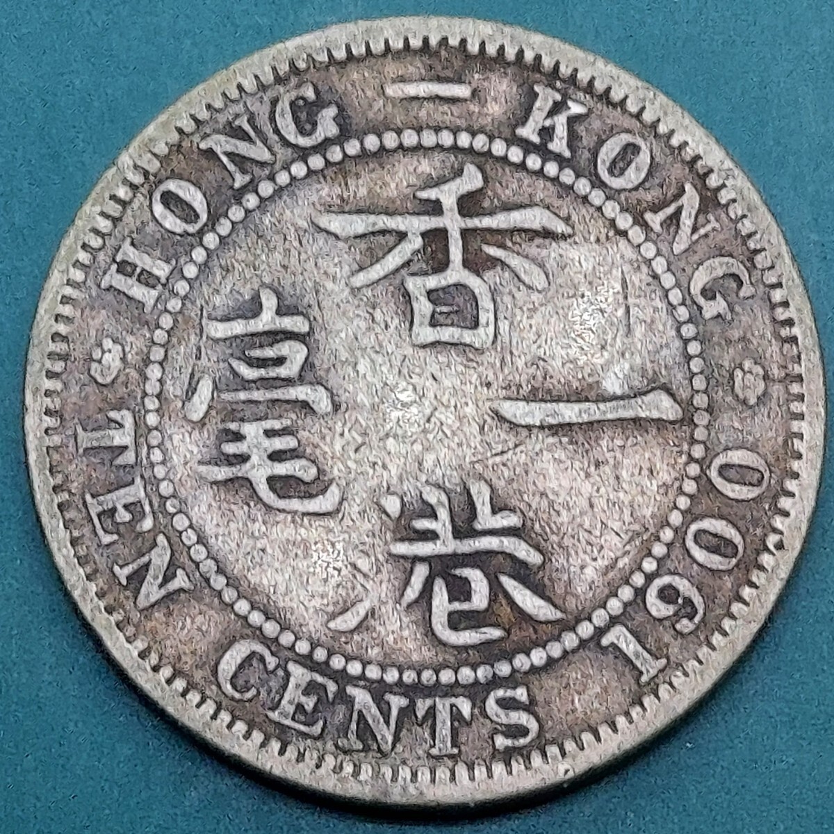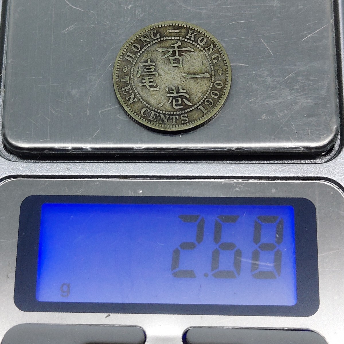 香港10セント銀貨 一毫銀貨 1900年発行 イギリス領時代の香港で発行された硬貨 約17.9×1.1㎜ 約2.68g アンティークコイン 【L206】