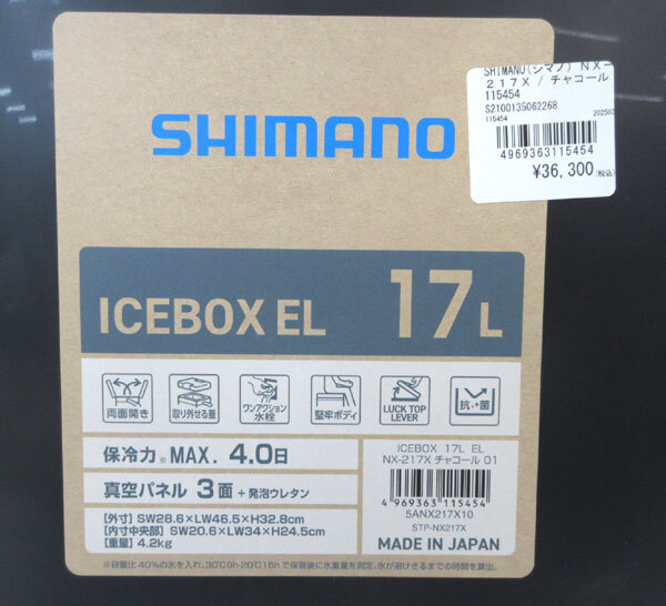 | シマノ アイスボックス EL 17L チャコール 日本製 36300円相当 | |