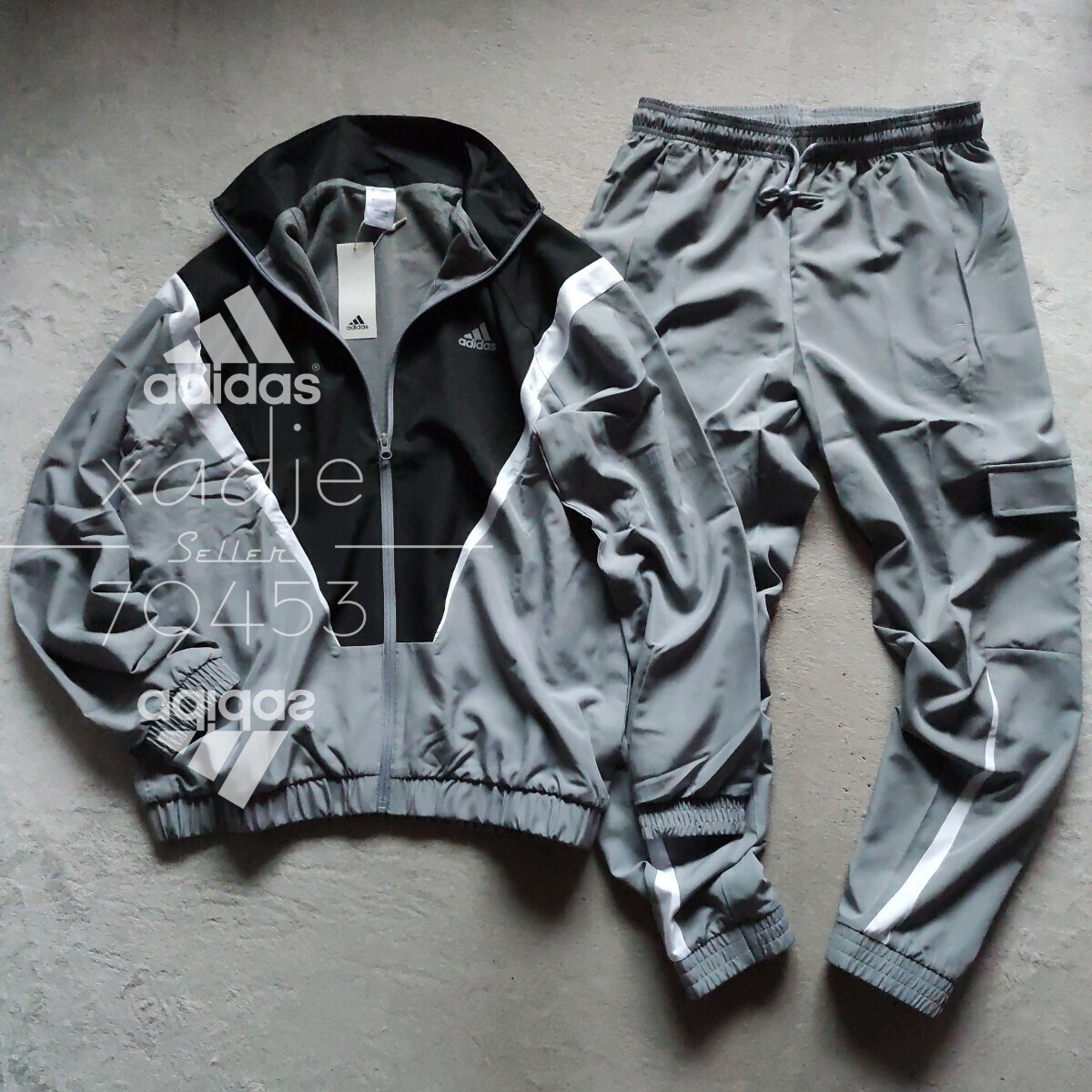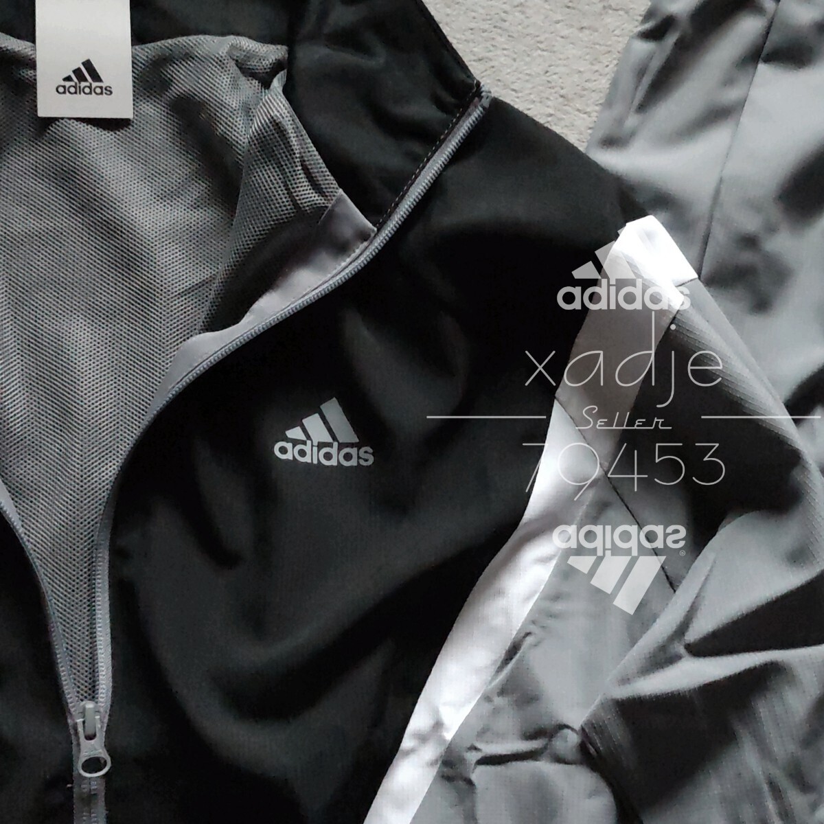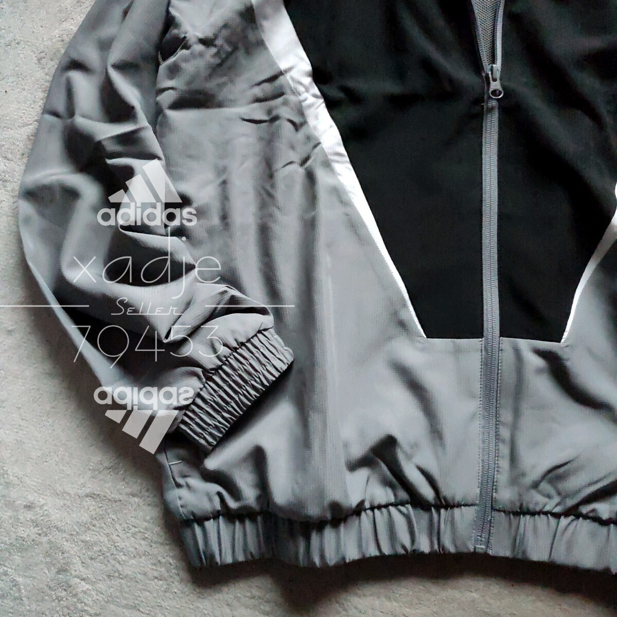 新品 正規品 adidas アディダス 上下セット ナイロン ジャージ セットアップ 灰 グレー 黒 ブラック 艶無し 薄手 定価10670円 XL