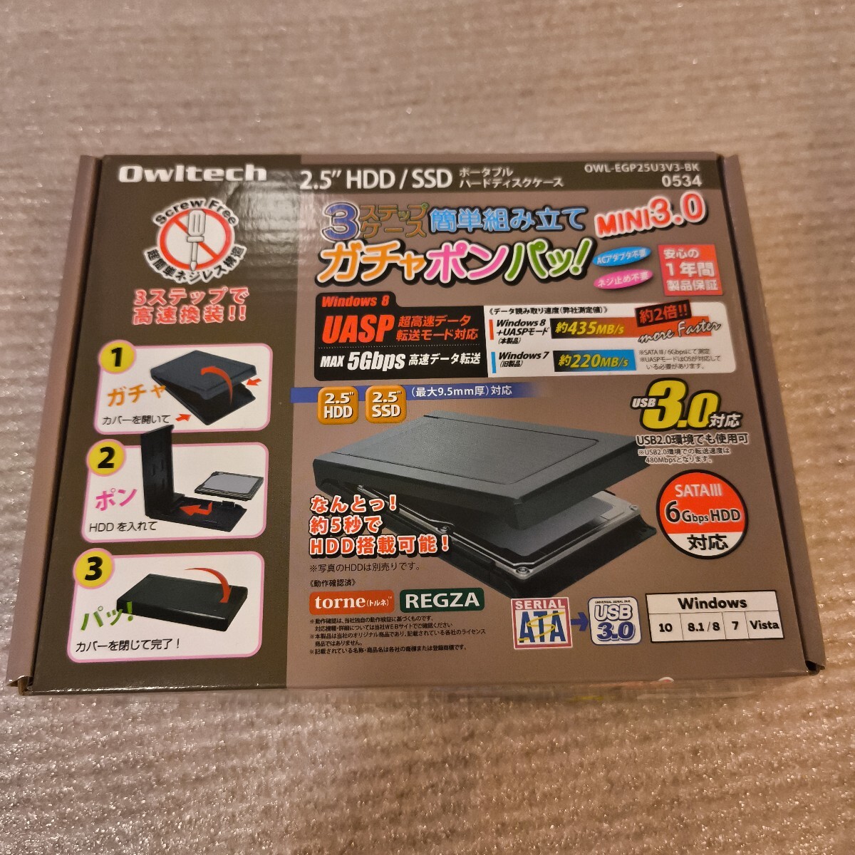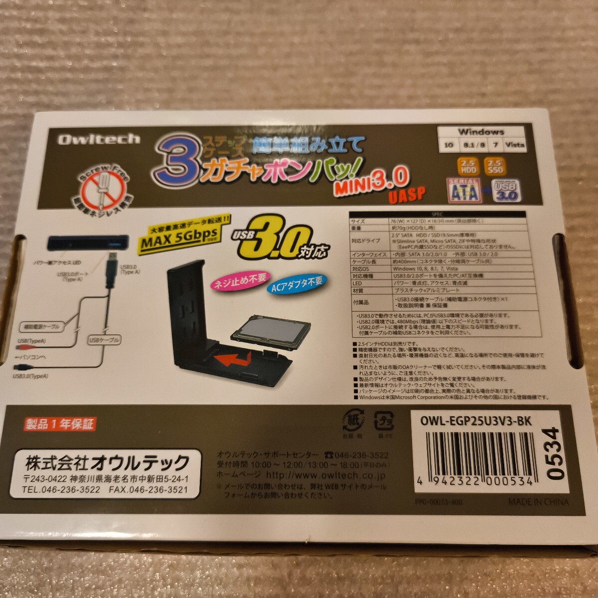 3ステップケース ガチャポンパッ! MINI3.0 OWL-EGP25U3V3-BK ブラック オウルテック (分類:ハードディスク ケース)