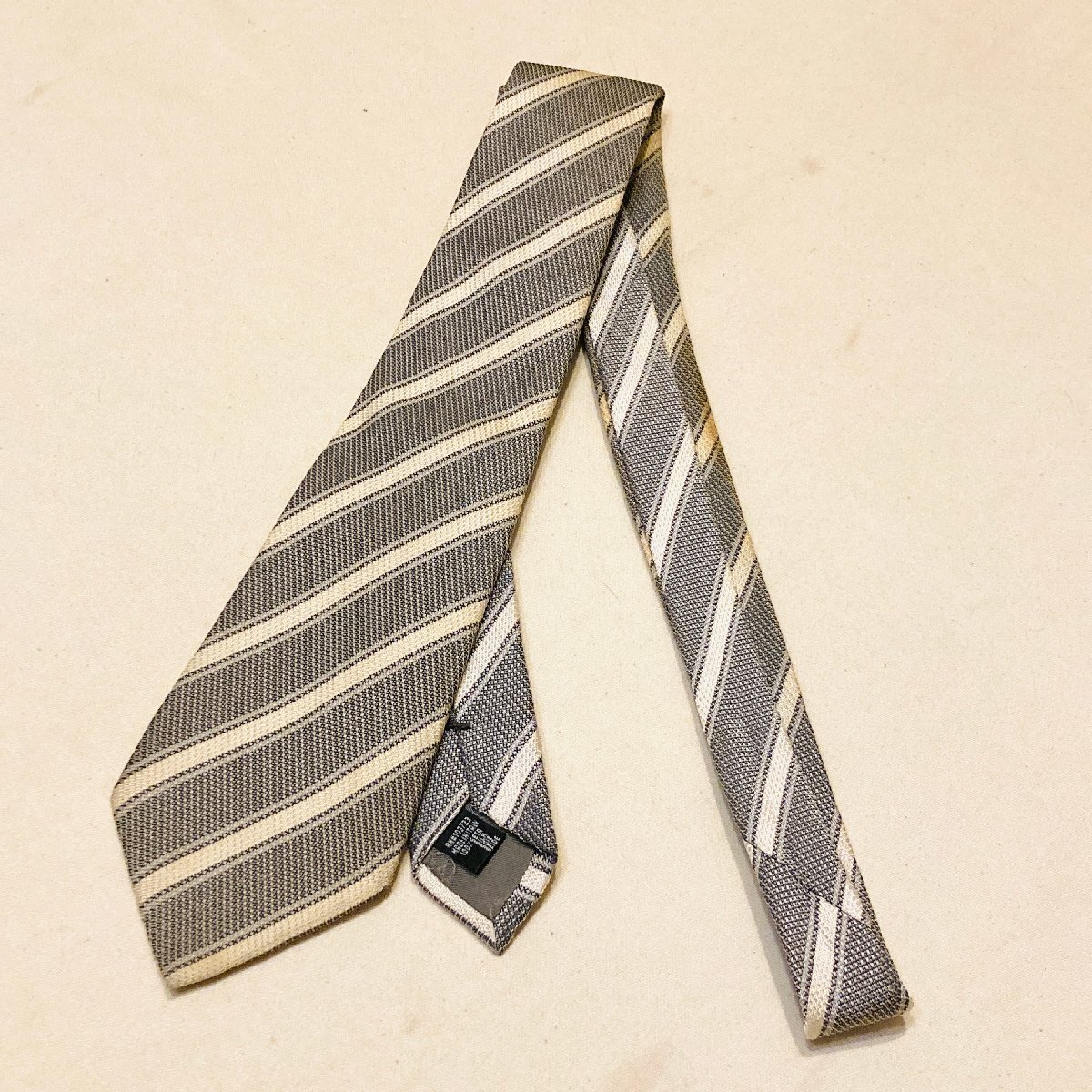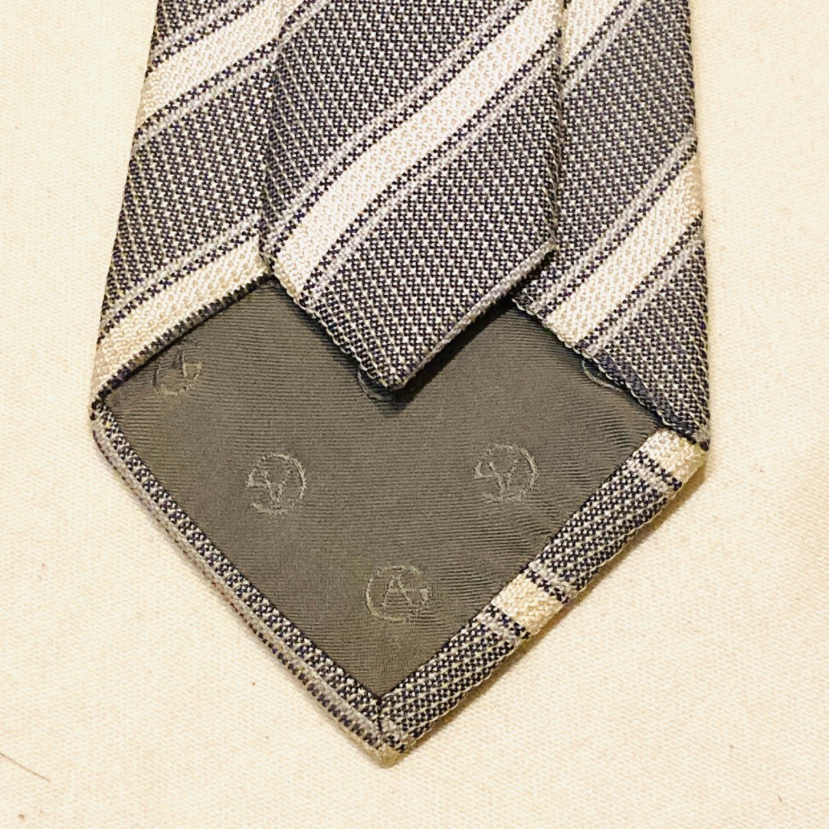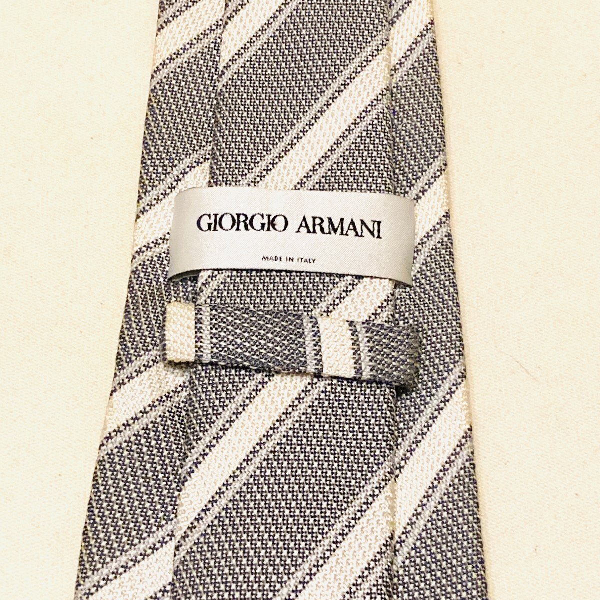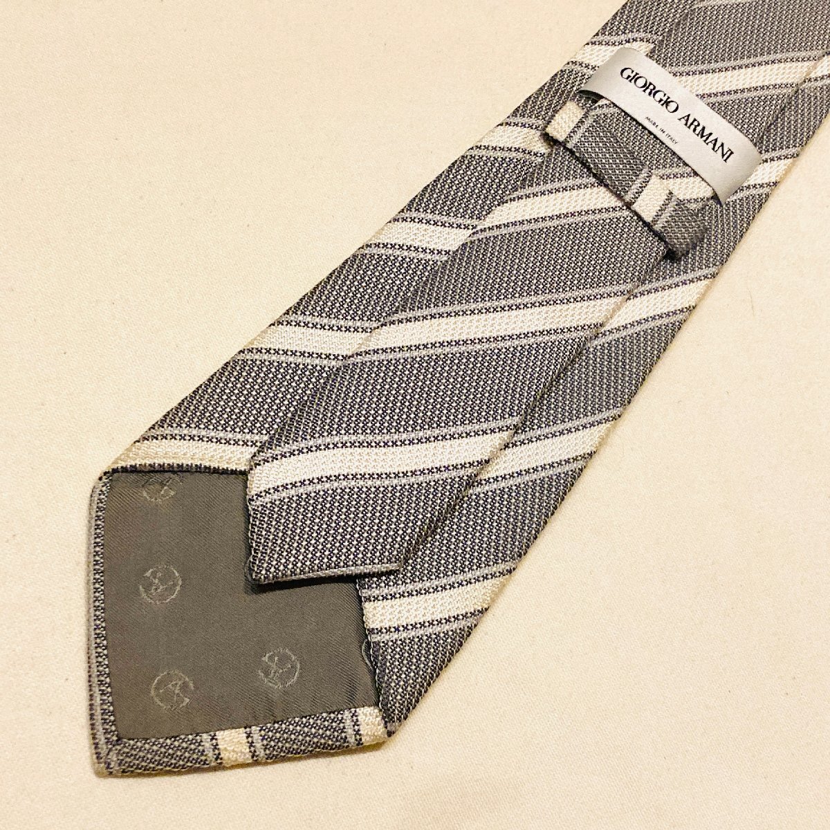 GIORGIO ARMANI ジョルジオアルマーニ イタリア製 絹 シルク SILK 100% 高級 ネクタイ シルバー/ホワイト系 ストライプ柄