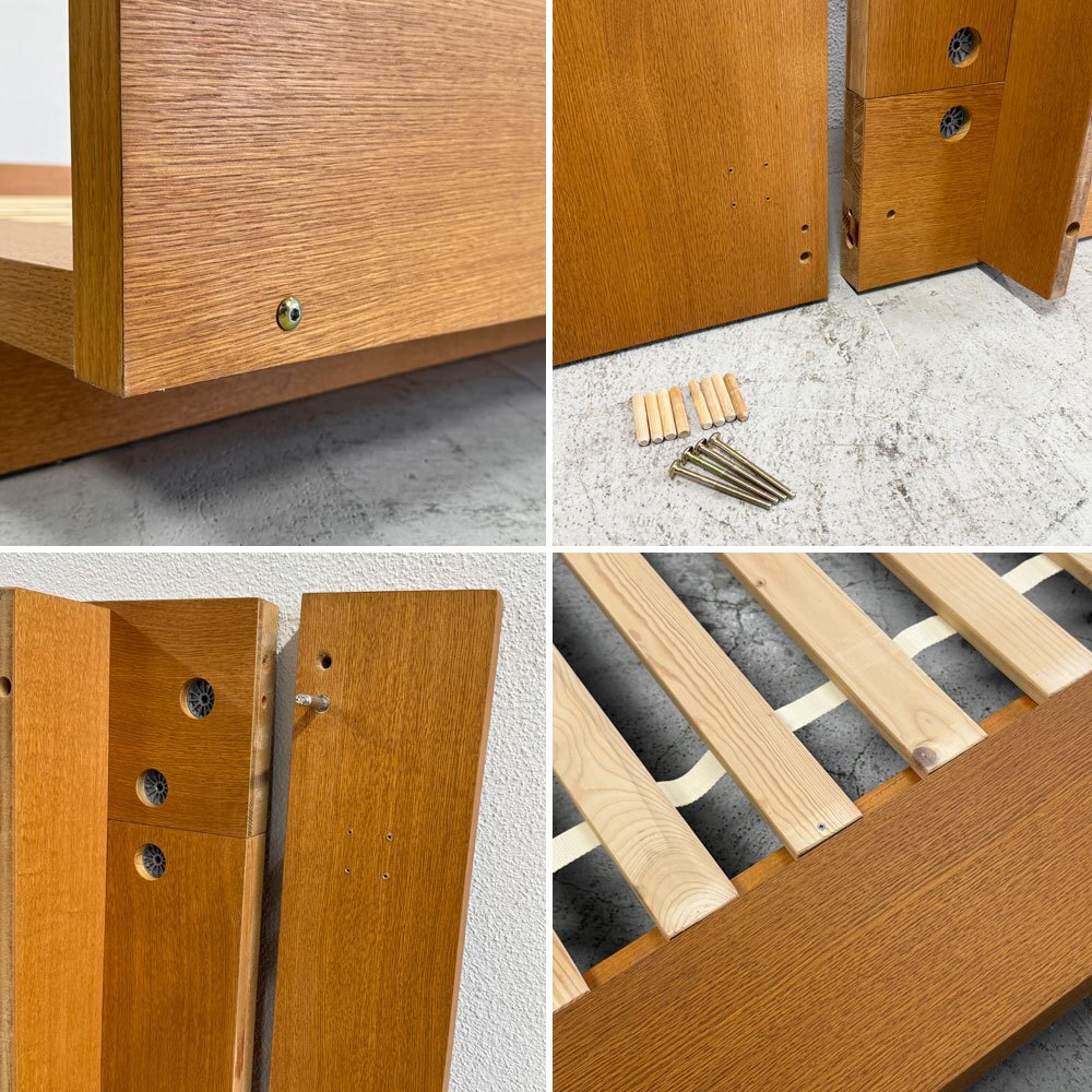 | コンディション | 打ち傷や突板のカケが複数あり、特に目立つものが脚部側の角にございます。その他L字金具を固定するためのネジが1本欠品しておりますが、強度に問題はございません。既に廃盤となって久しいお品物ながら、今回の商品は概ね良好なコンディションを保っております。 ※特筆すべきコンディションは出来るだけ記載させて頂きますが、細かい擦れや傷、汚れ等を完全にお伝えする事は出来ません。画像をご確認の上、ご入札をご検討下さいませ。 ※取扱説明書や保証書等は記載が無い限り付属いたしません。 |