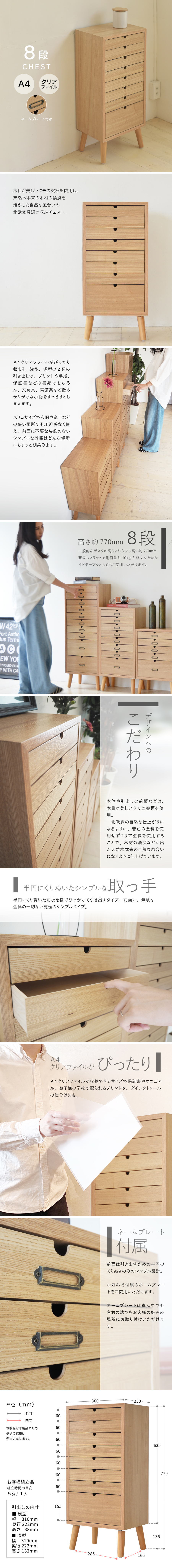 | ◆ 商品名 | 北欧スタイル タモ材 8段チェスト |