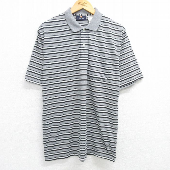 【商品名】 L★古着 ピューリタン 半袖 ポロ シャツ メンズ グレー他 ボーダー