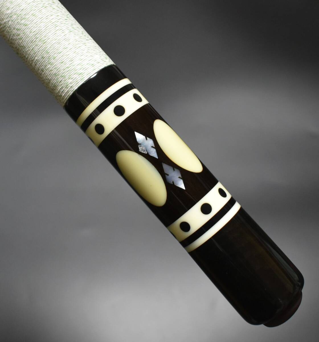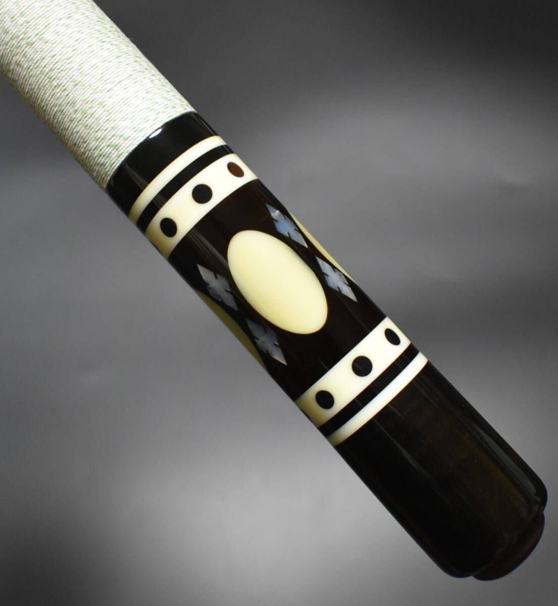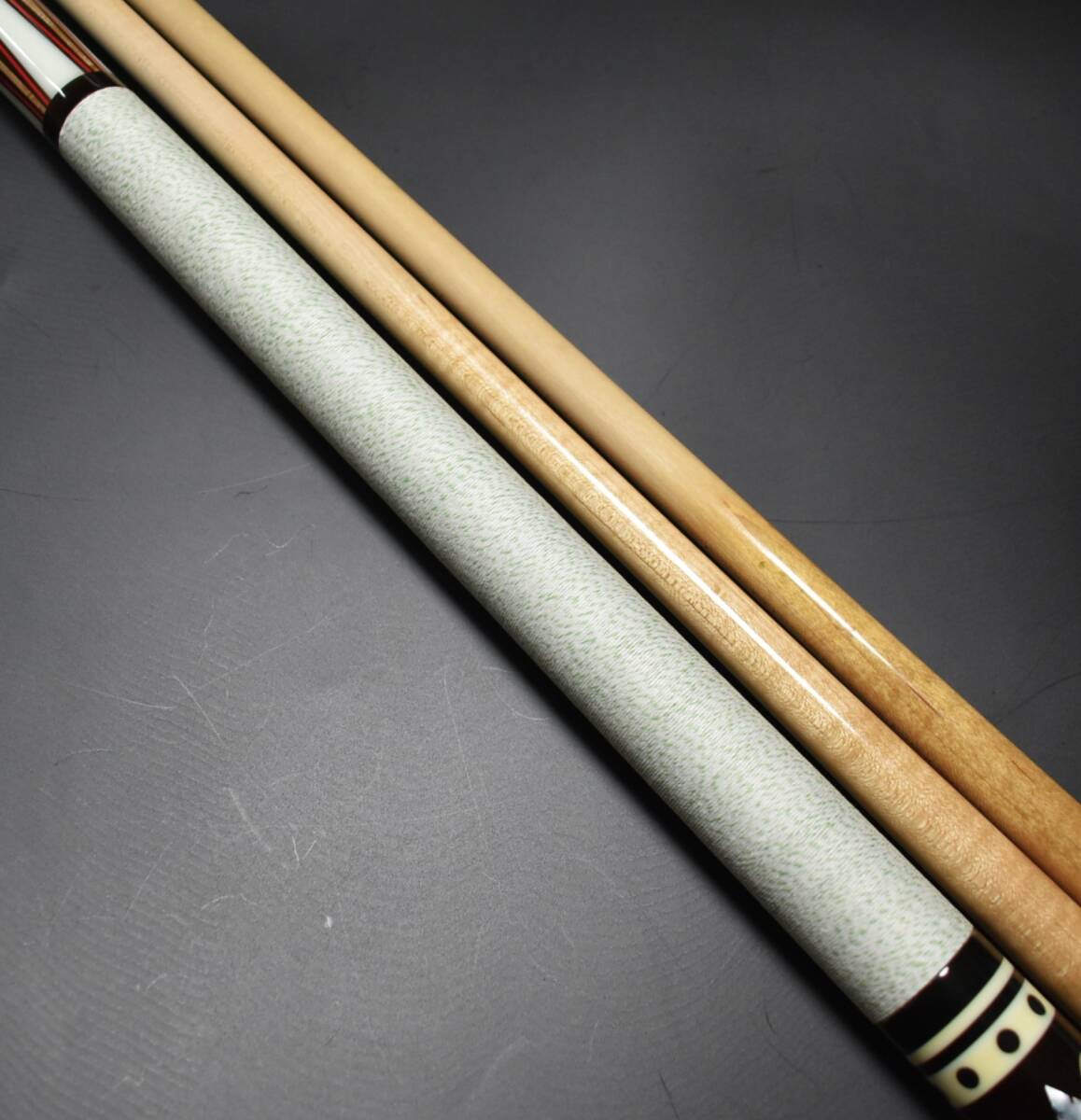 シリアルナンバー10番台の希少な4剣タッドキュー★ バットスリーブは独特なオーラを醸し出しております★ この機会にいかがでしょうか☆ *バット約430g 18山 *シャフト約108g トラ目 モーリタップS先端未加工 *シャフト約110g モーリタップS *ジョイントプロテクター付属 *シリアルナンバー1*番 (*は公開いたしません) 50年ほど前の初期モノとなります。前所有者はリペア後は飾っておられたようです。 スリーブのデザインは他とはかぶらない一点物であり同じモノは存在しません。 バットはやや細めですが、ずっしとした手ごたえを感じます。 プレイの支障となる、異音、バタつき、反りは見受けられません。 年代物ですので細かい方や神経質な方は、ご遠慮ください。 ご入札前に現品確認の対応可能です。 現品確認をご希望の際は質問欄、または自己紹介欄からお問い合わせください。 ■お願い 24時間以内にご連絡を頂けない方やご入金に3日間以上かかる方のご入札はお控えください。 また、不本意では御座いますが、オークション終了後24時間が過ぎてもご連絡を頂けない場合は落札者様の都合にてキャンセルいたします。 その場合システム上(悪い)の評価が下されます。 ◆評価内容に不安を感じた場合は入札削除いたしますのでご了承ください。 | |||