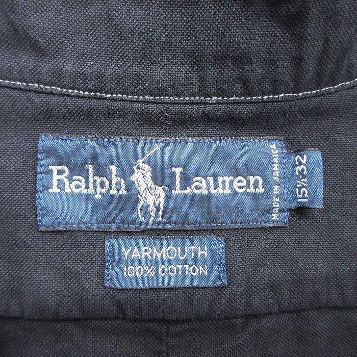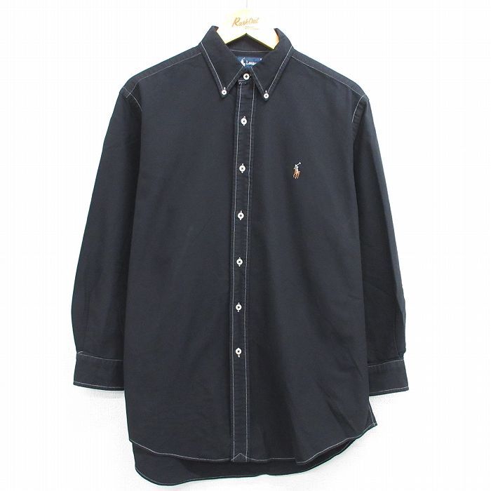 【商品名】 XL★古着 長袖 ブランド シャツ メンズ 90年代 90s ワンポイントロゴ YARMOUTH オックスフォード コットン ボタンダウン 黒