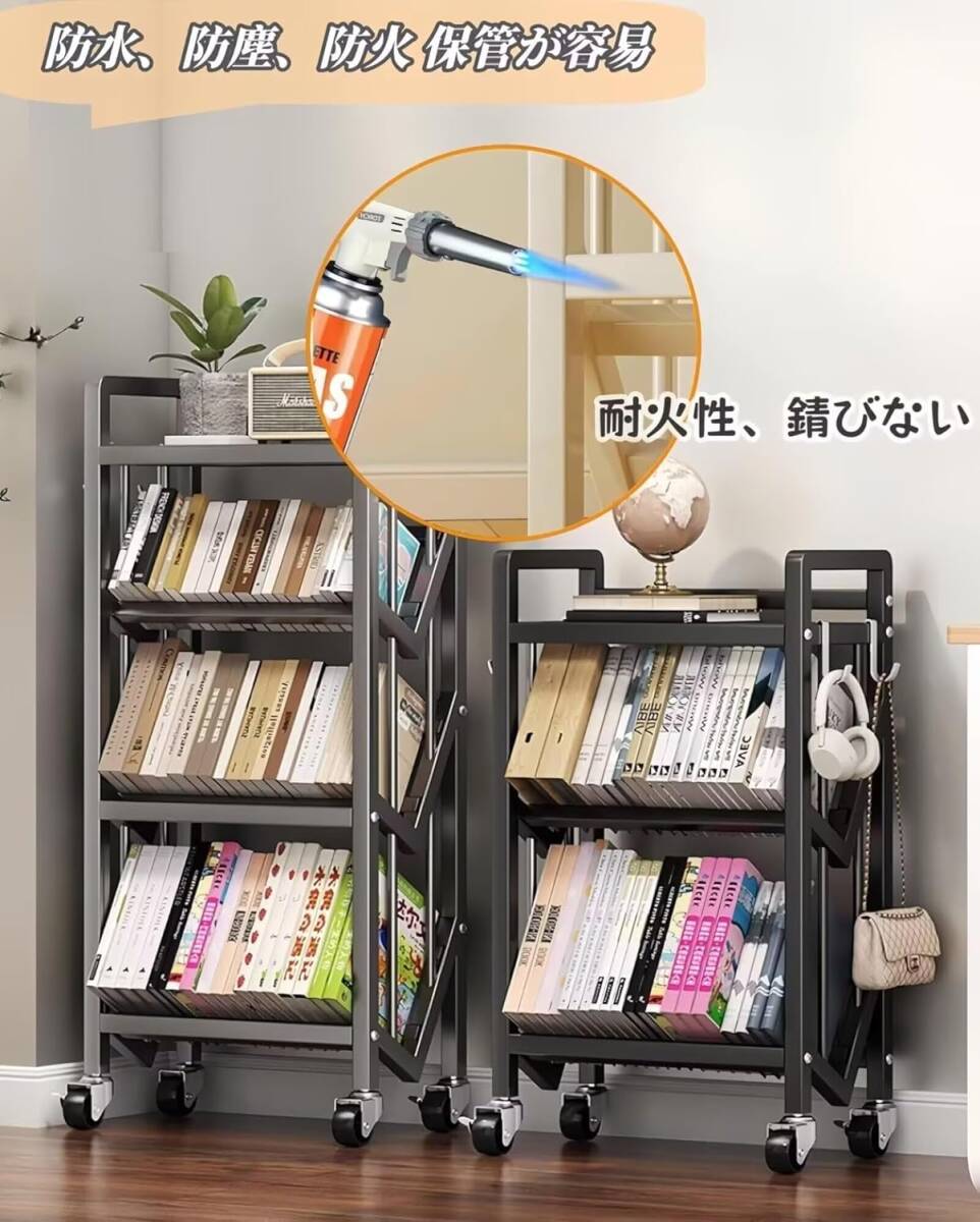 軽々移動出来る TUIYIDUO ファイルラック ファイルワゴン 本棚 5段 幅90cm 回転キャスター付き 制動可能 スチール製 大容量