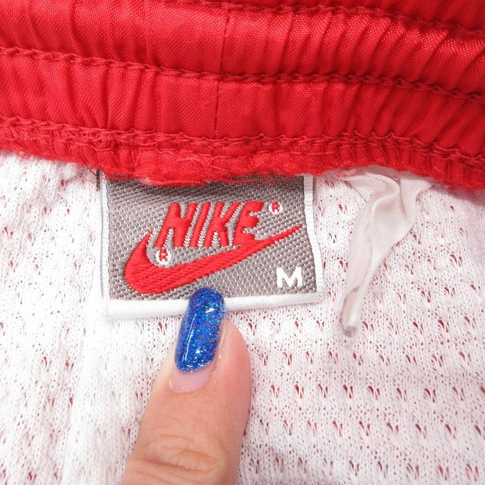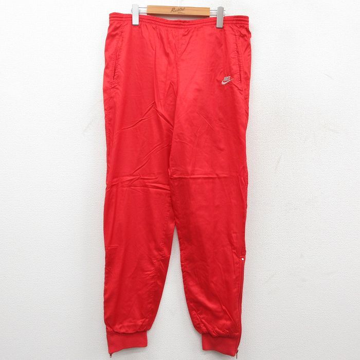 【商品名】 W33★古着 ナイキ NIKE ナイロン パンツ メンズ 90年代 90s ワンポイントロゴ 赤 内側メッシュ