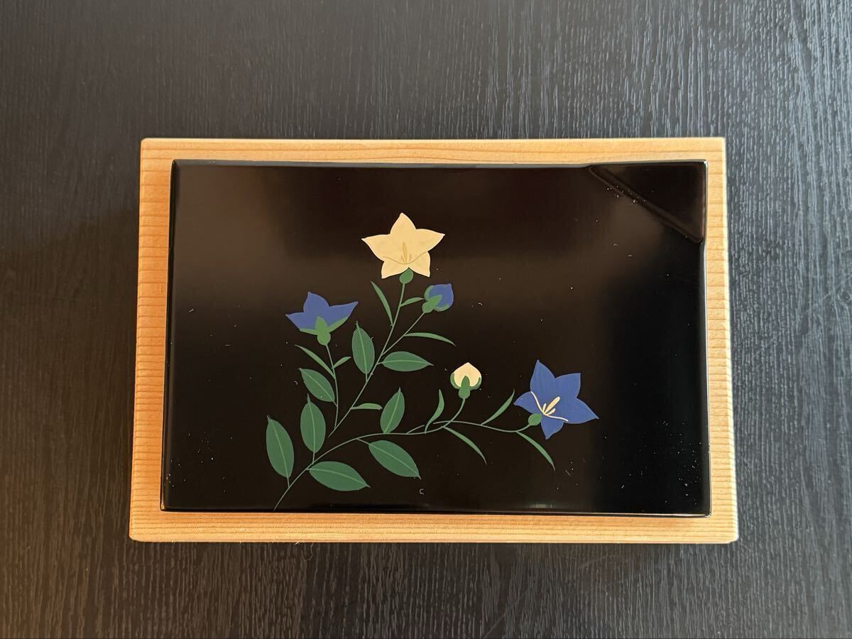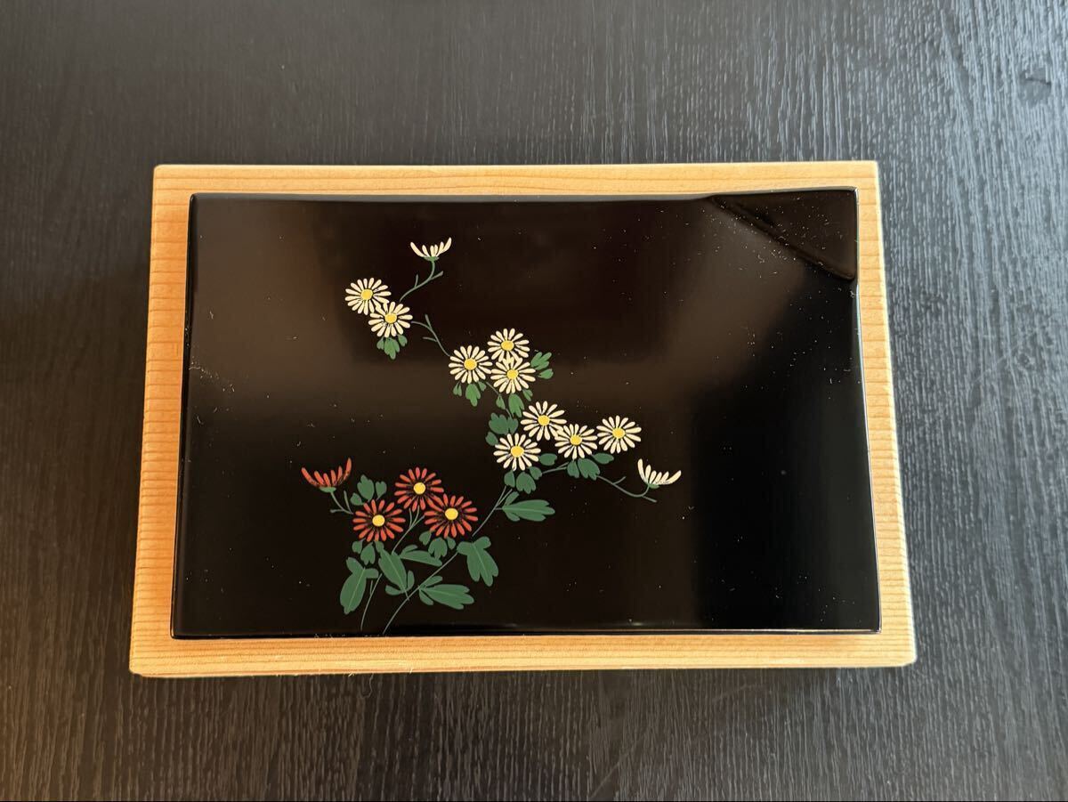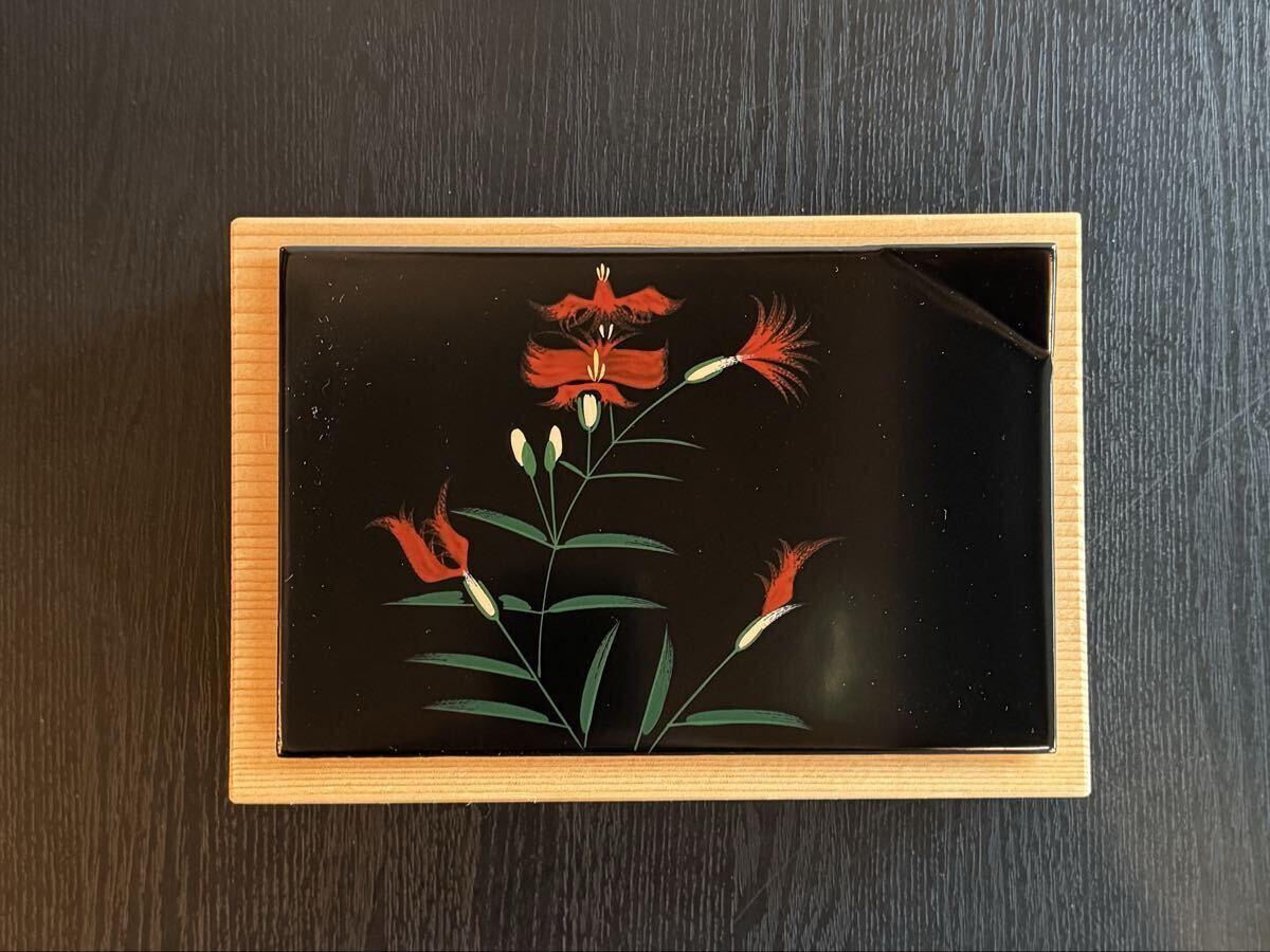 ◆◇◆ 沈金蒔絵風  花文様  平安堂  長角銘々皿 5枚セット  共箱入り  和食器  菓子皿  漆器  ◆◇◆