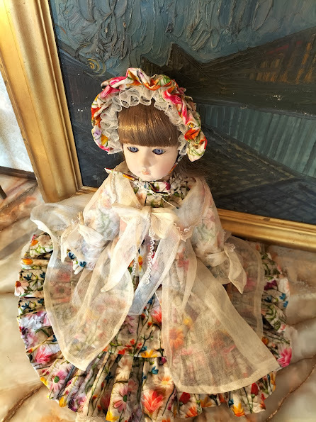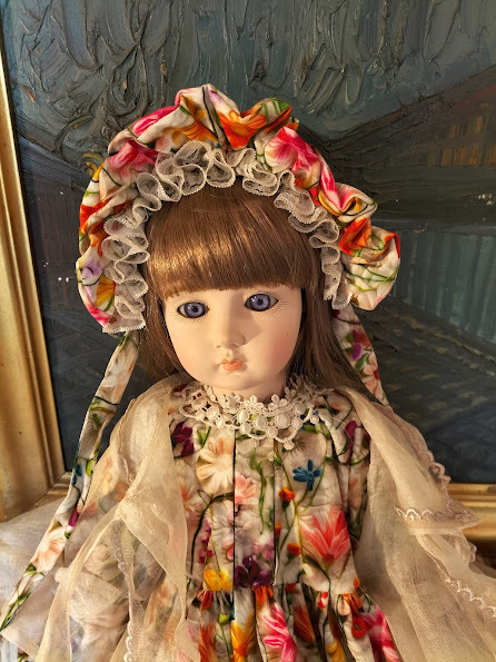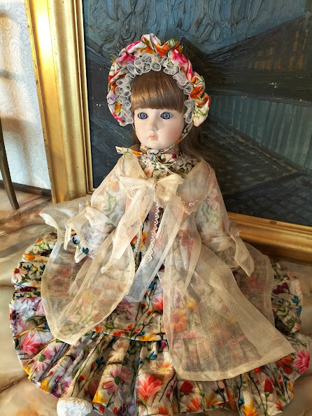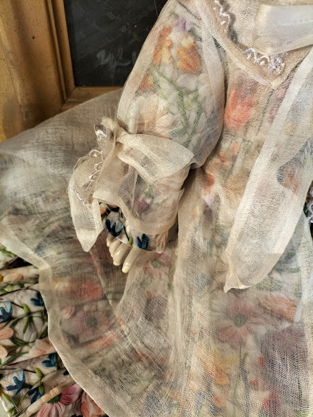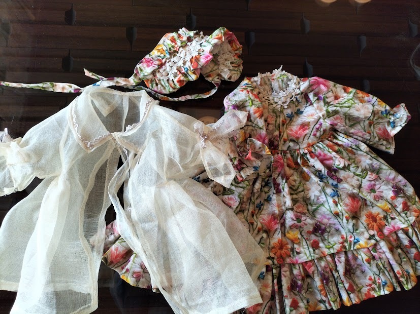ドールの背丈が57~60cm用 オータムカラードレス(花柄)とシフォンオーバードレスとボネ