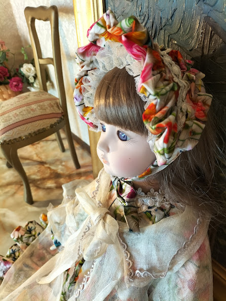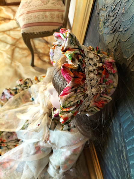 *ボンネットにもお揃いのレース飾り 内側にもフリルを付けてあります。