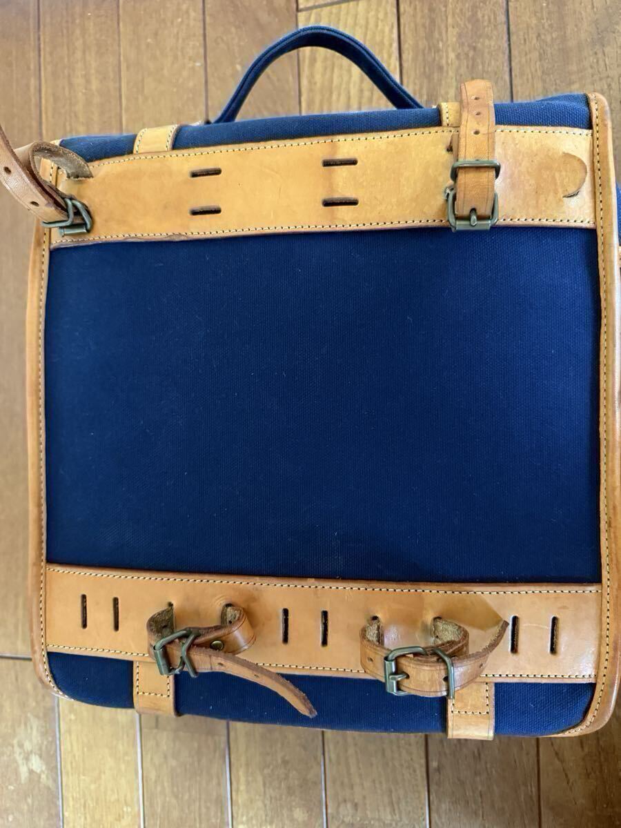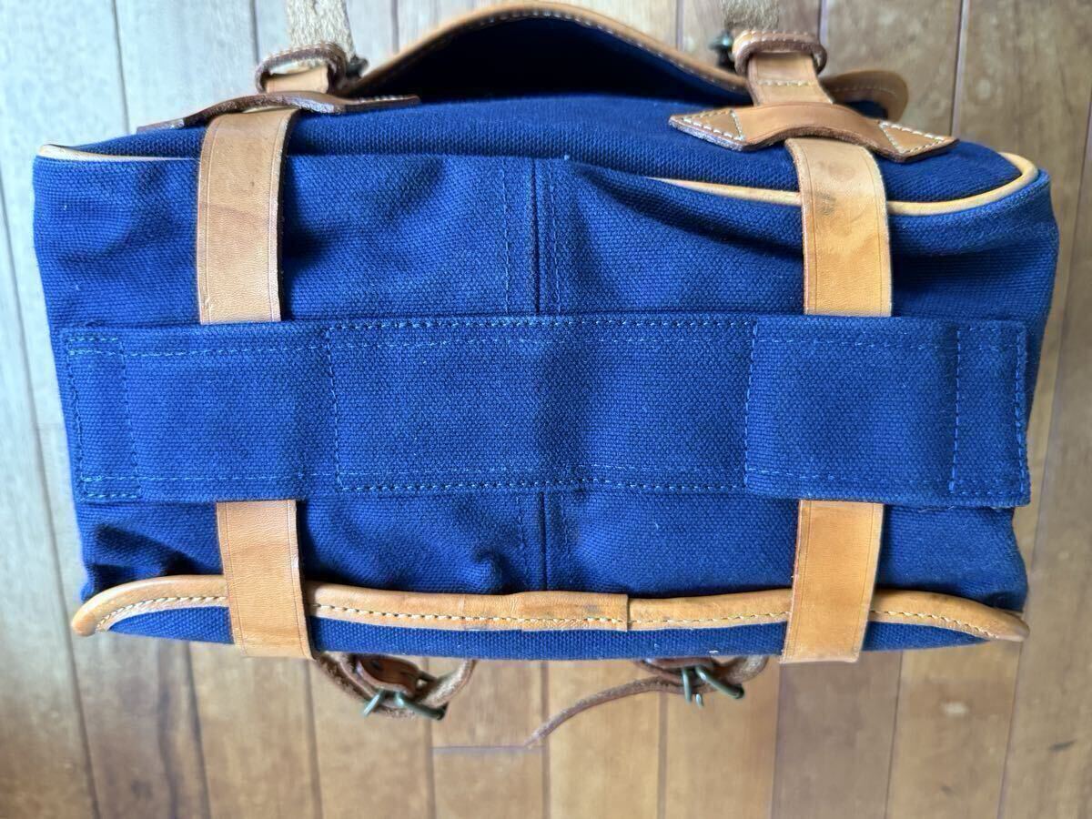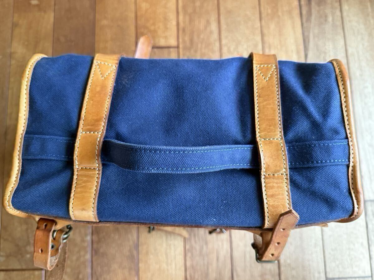 大変高品質、丁寧な作りで、濃紺の帆布とヌメ色の革のコンビネーションが格好良いです。合わせやすいカラーリングかと思います。