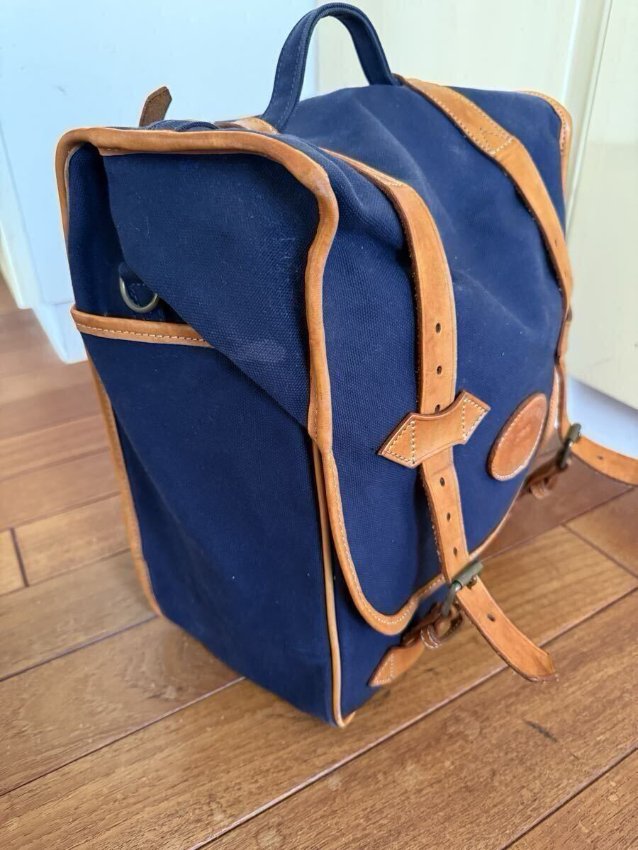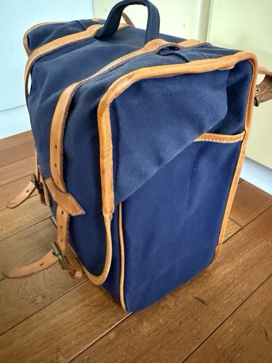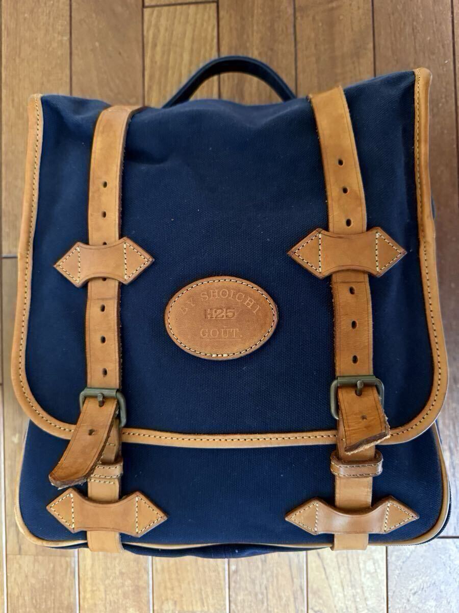 大変高品質、丁寧な作りで、濃紺の帆布とヌメ色の革のコンビネーションが格好良いです。合わせやすいカラーリングかと思います。