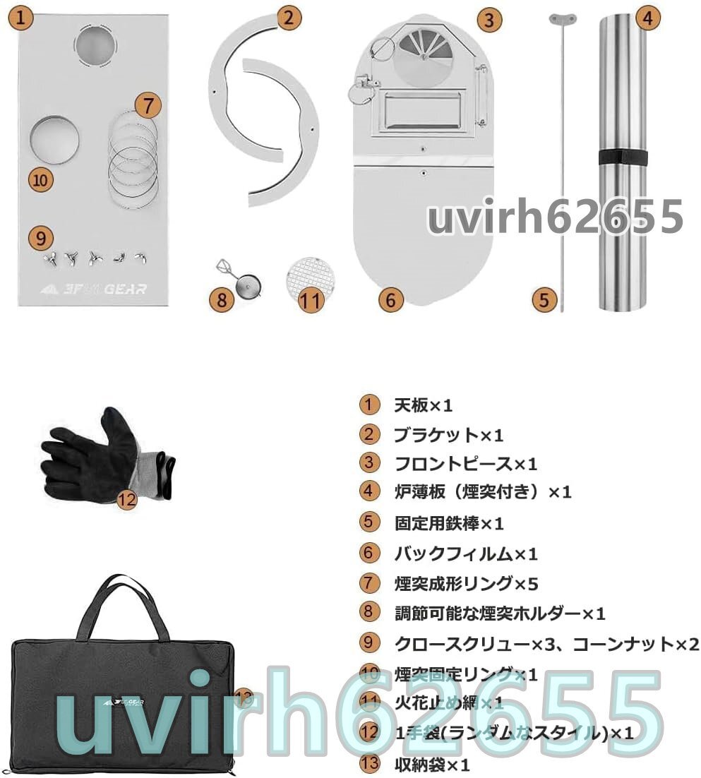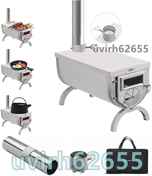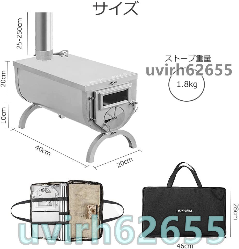 【高品質素材 & 超軽量】当社の薪ストーブは、鉄よりも耐食性に優れた高品質のステンレス素材を使用しており、雨天・雪天にも使用できます。 また、ステンレス鋼は鉄よりも強度が高く、変形しにくいため、薪ストーブを選ぶ際に最適な素材です。 ステンレス鋼の材料は耐久性があり、高い熱伝導率と優れた耐久性を備えています。薪ストーブ自体の重さはわずか1.8kgと、通常の薪ストーブよりも軽く、持ち運びが簡単で、野外キャンプに最適です。