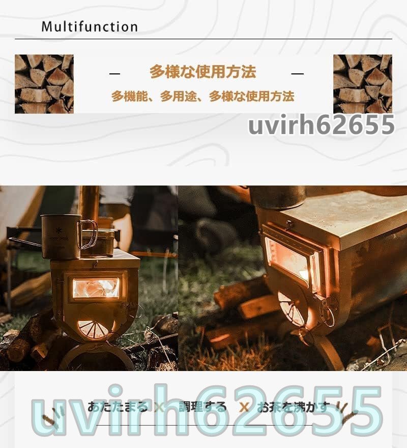 【推奨用途】アウトドアやピクニック用のストーブ。 防寒対策、暖房用薪ストーブ。折りたたんで持ち運びが簡単なので、キャンプにも大活躍!大人のキャンプセット、家族の集まりやキャンプファイヤーにも使えます。ホットコーヒー、スープ、コーヒーなどが好きな場合は、必須のキャンプツール。フロントカバーを通して燃焼を制御します。 フロントカバーを閉めると、長時間火が燃えます。