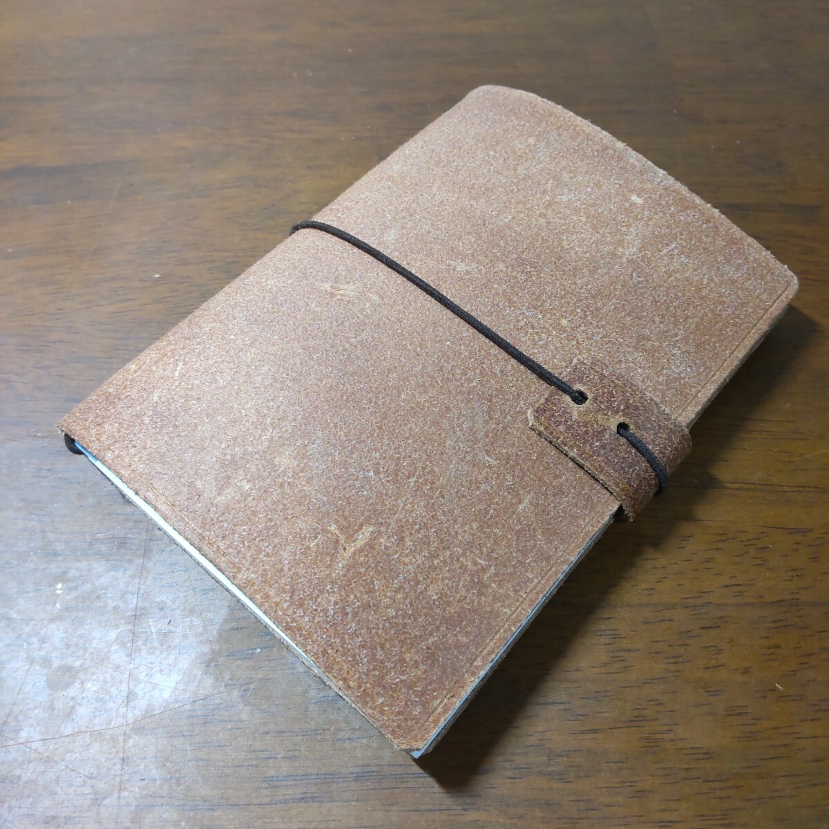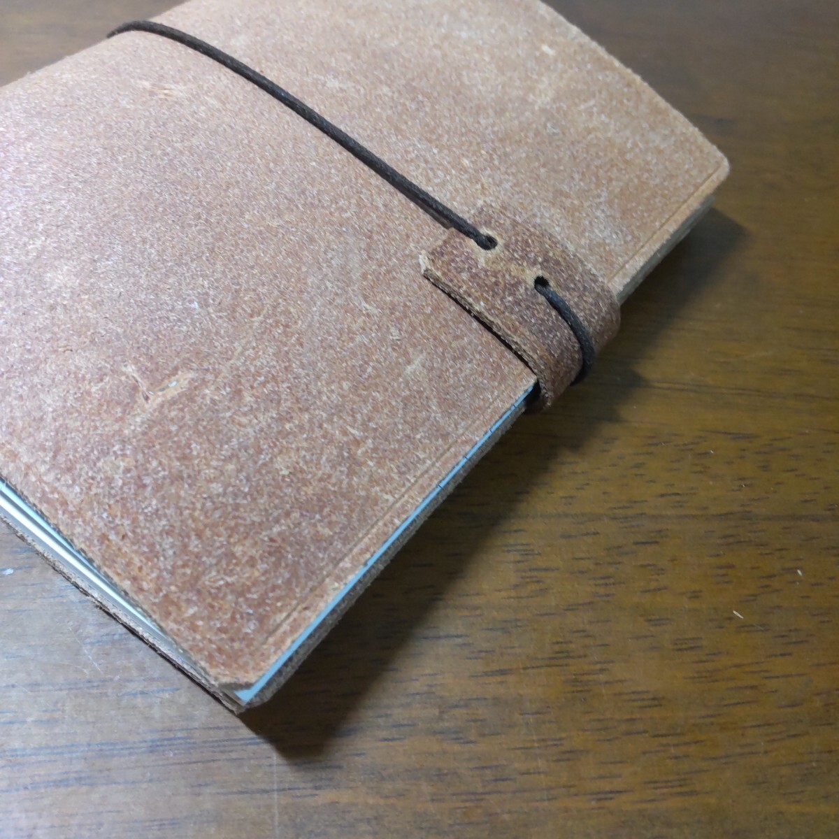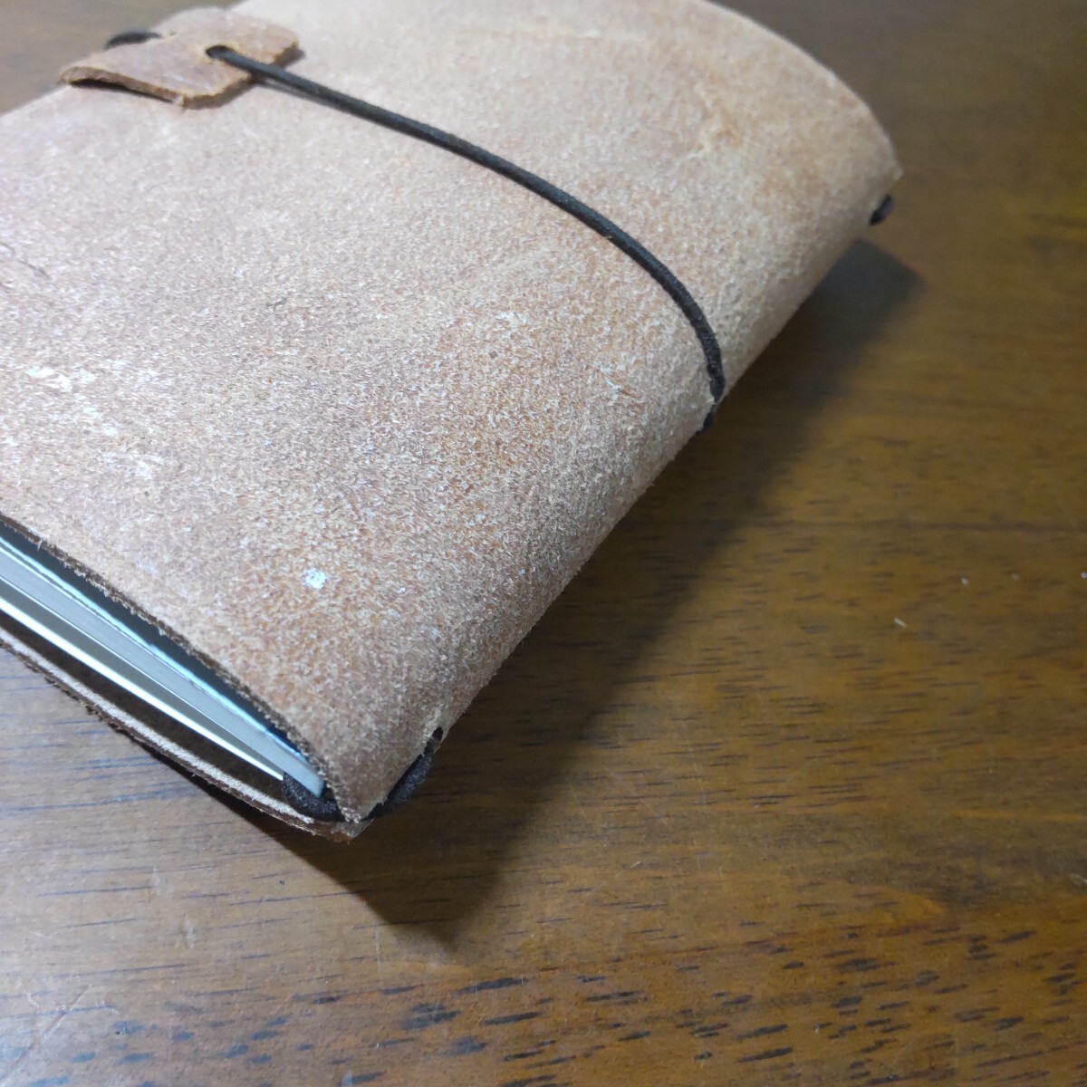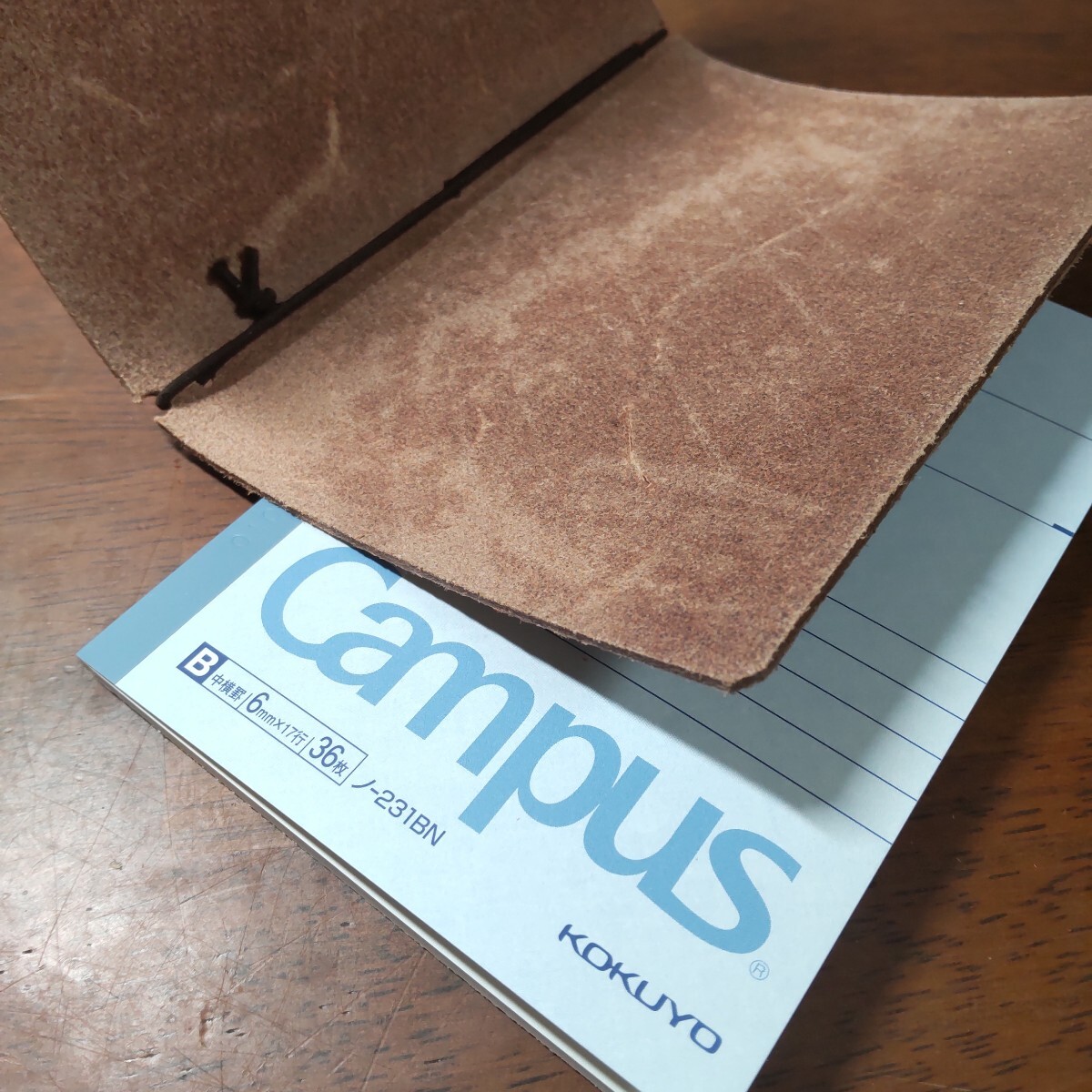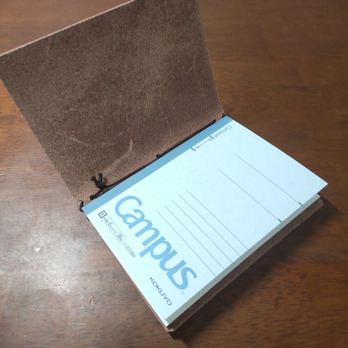 トラベラーズノートの様にゴムでノートを取り付け使用します、携帯性を考慮してコクヨCampusB7ノート一冊分のサイズに絞り込んであります。