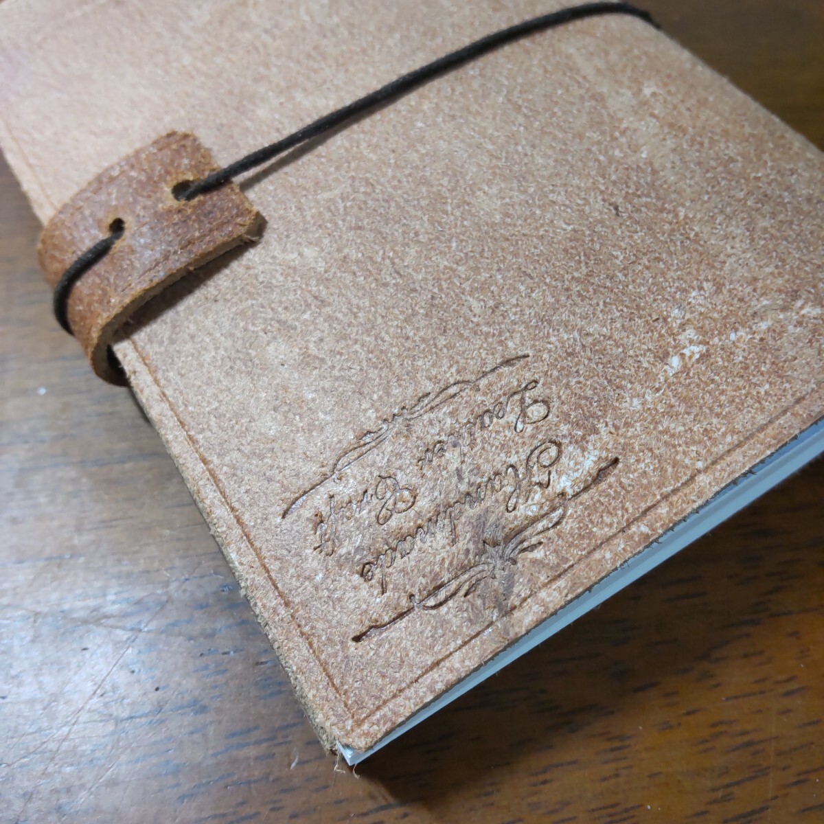 表情を引き締めるため外周にネン引きしてあります、裏表紙にワンポイント刻印を施しました。