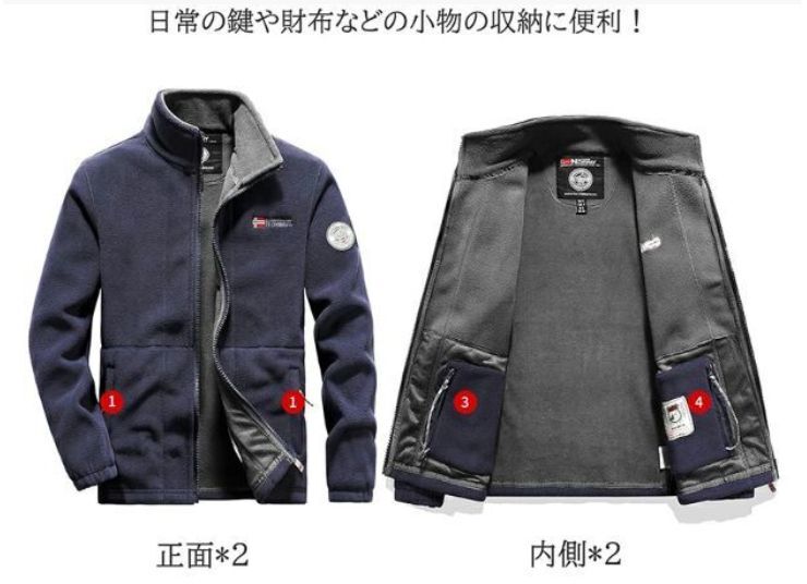 【送料無料】サイズ(XL)楽天5680円ネービーブルー色 ボアジャケット アウトドア 厚手 暖かい ポリエステル繊維 ジッパー開閉 スタンドカラー コート