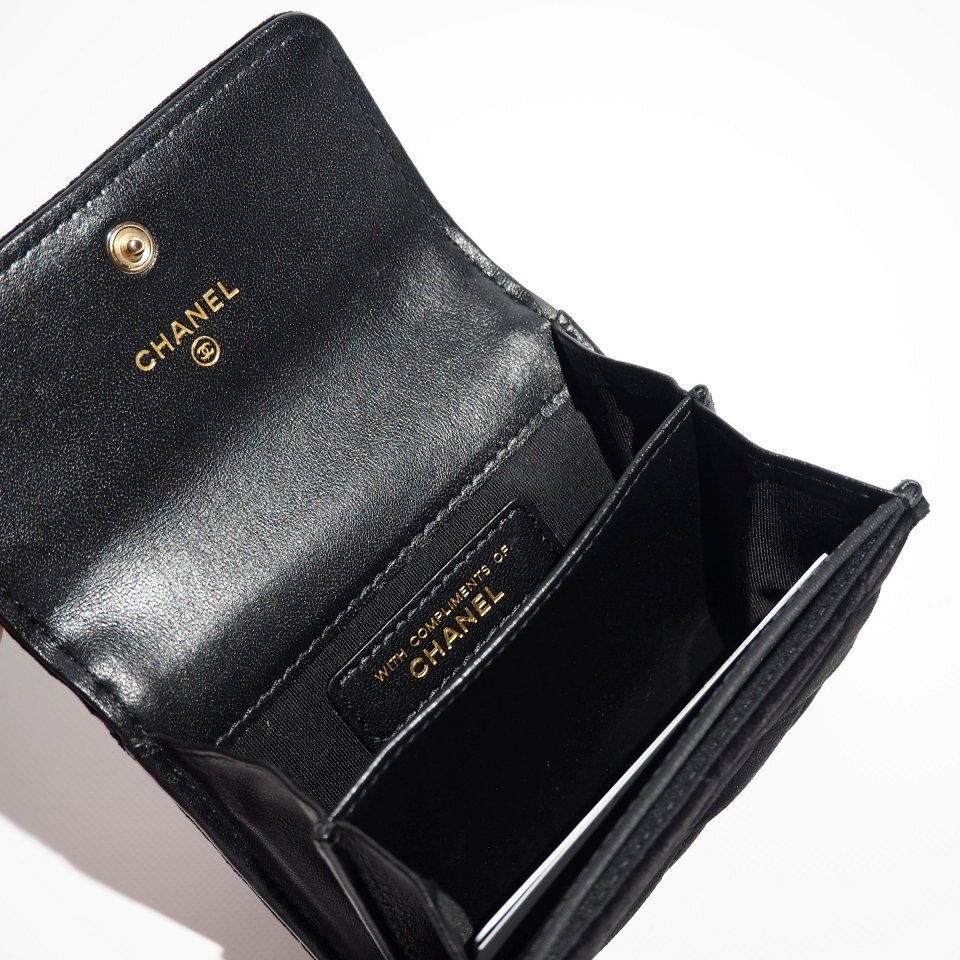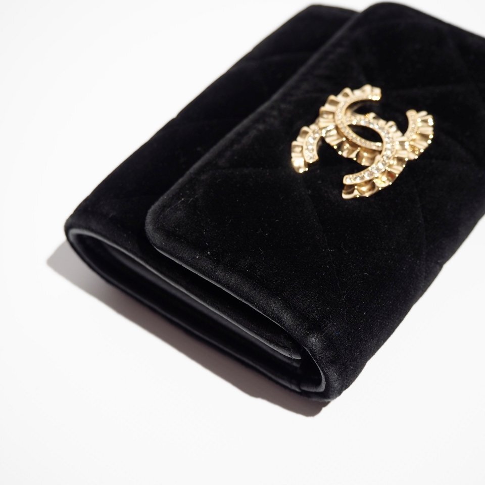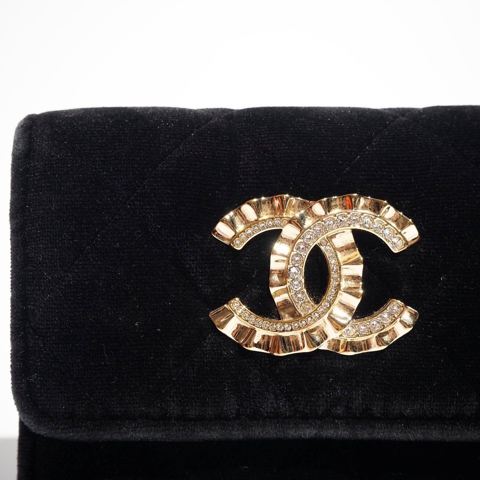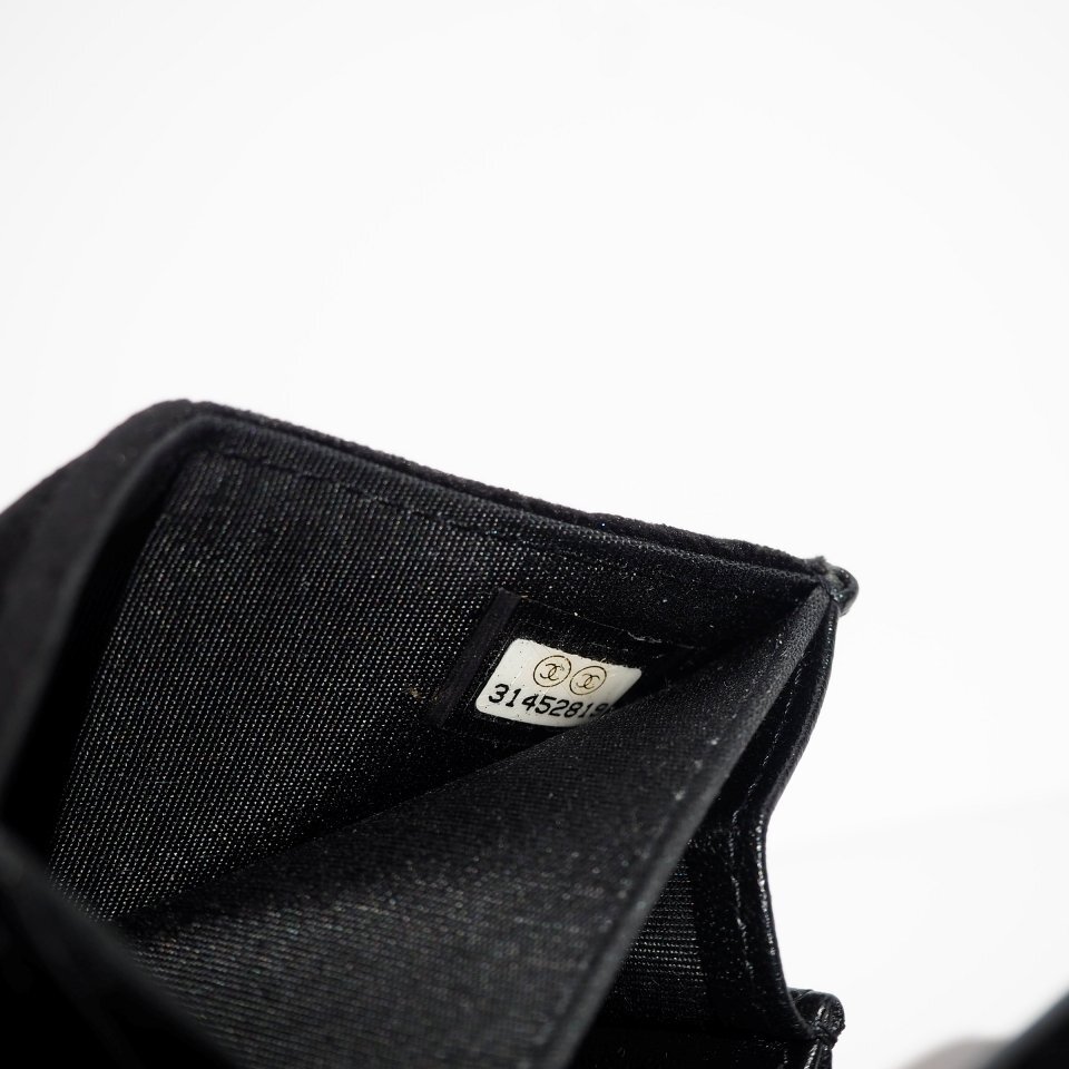R1927P ▼CHANEL シャネル▼ ラインストーンココ ベロア マトラッセ カードケース / コインケース ブラック / 財布 サイフ 黒 rb mks