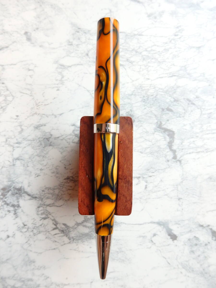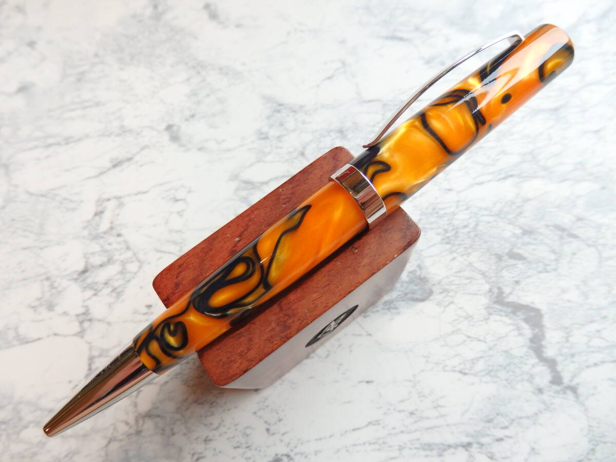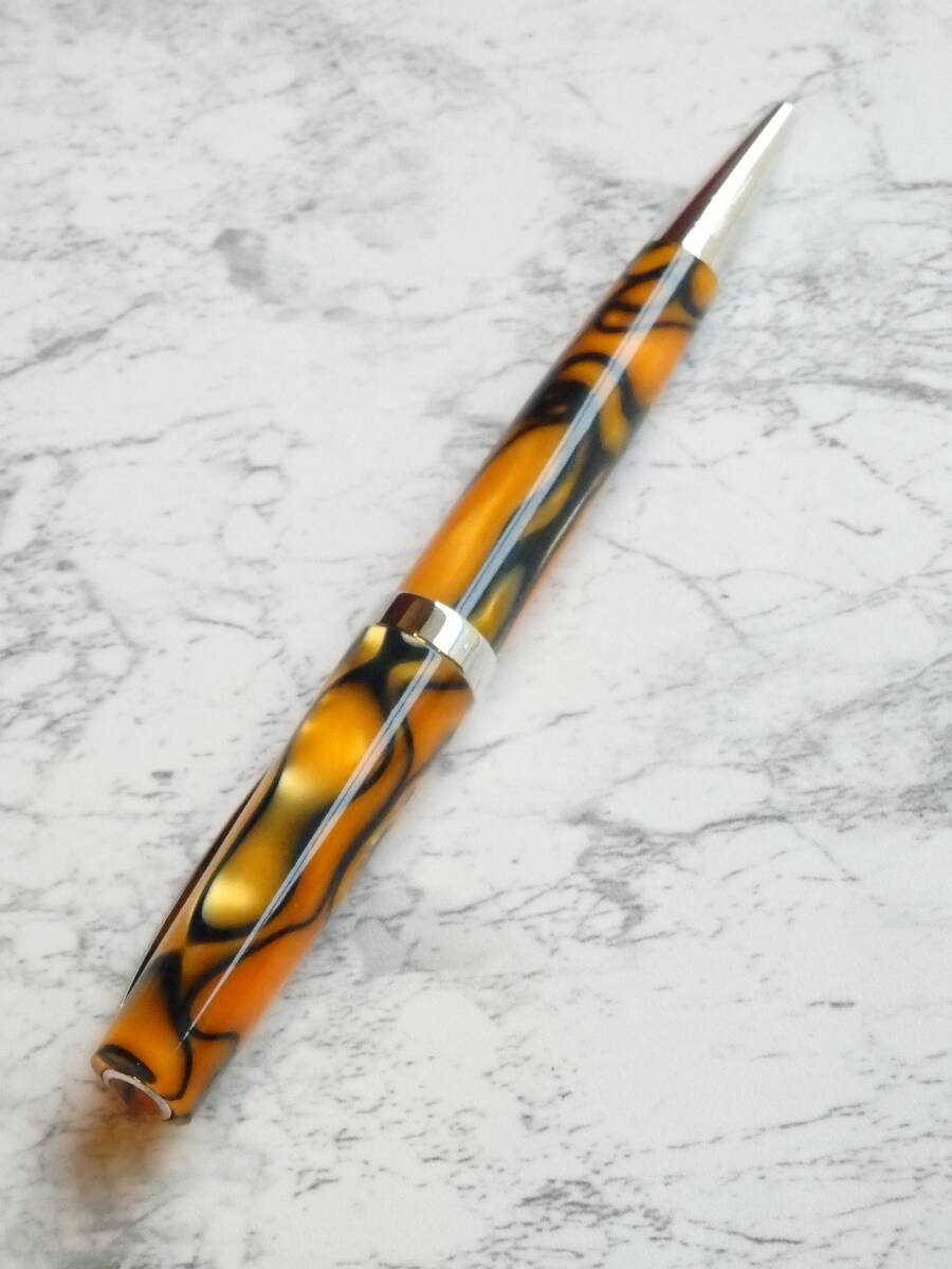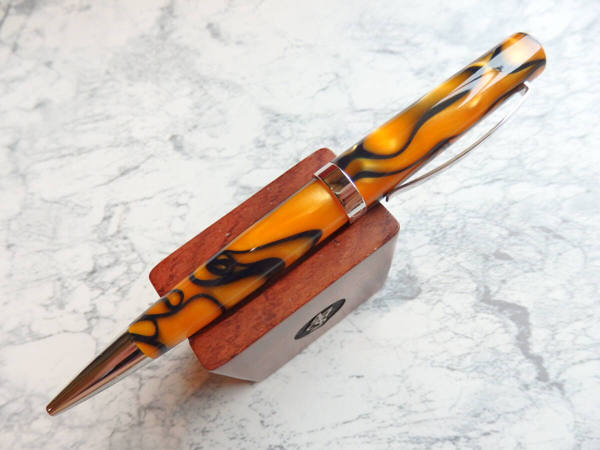 タイガーアイのイタリアンプレシャスレジン製の軸が実に優美です。