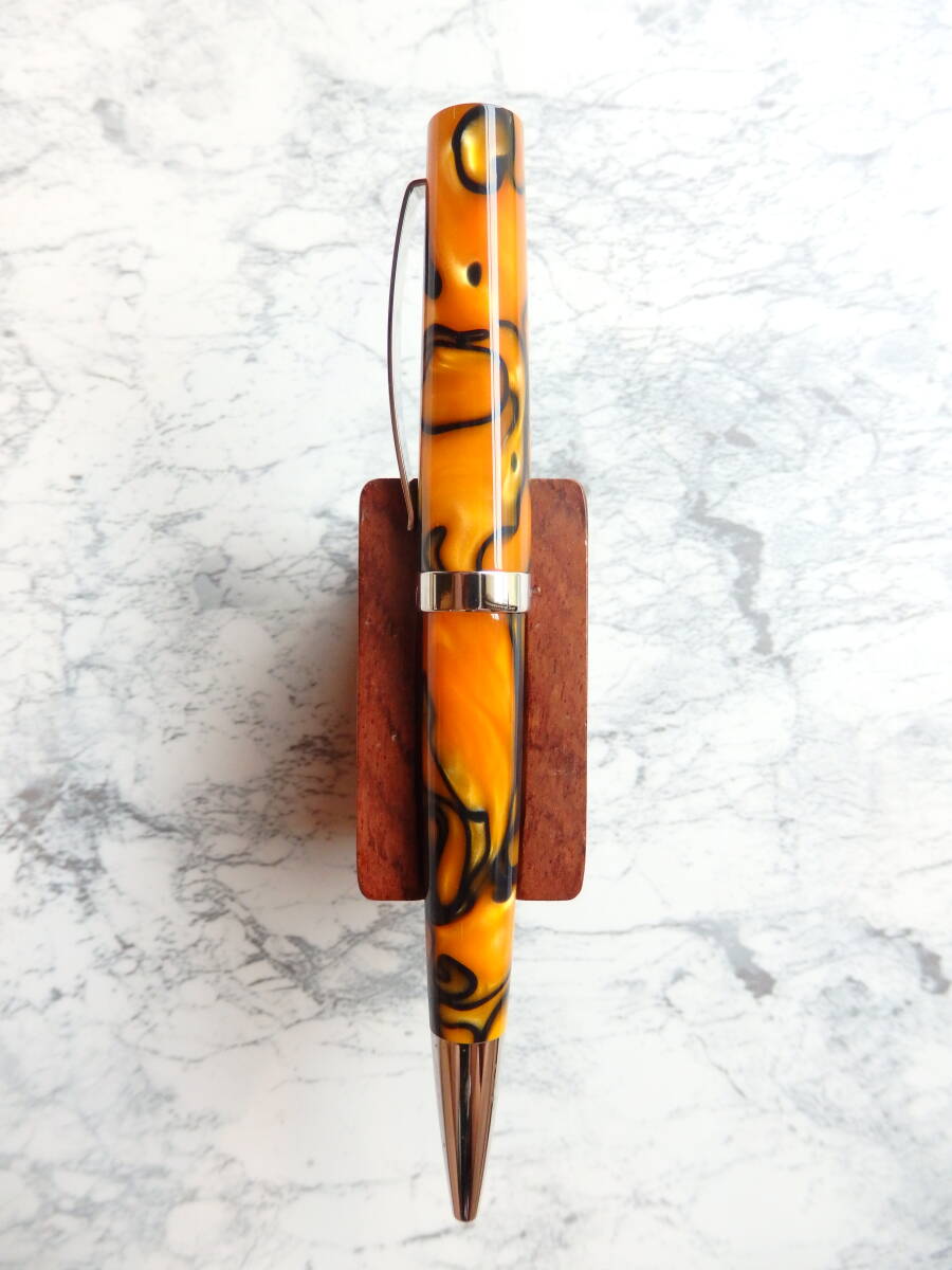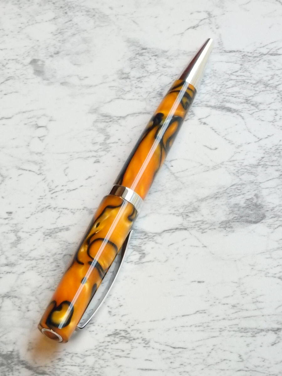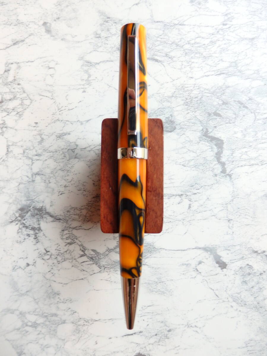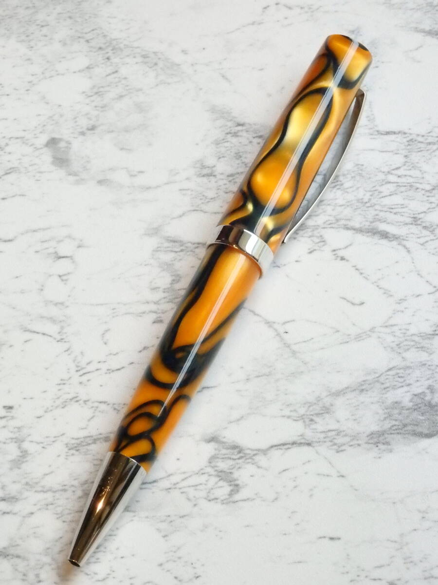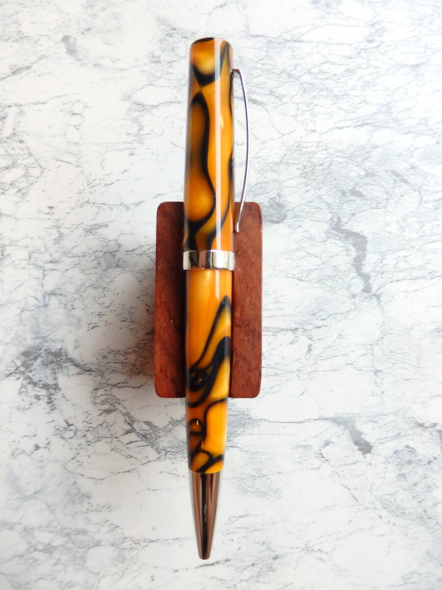 タイガーアイのイタリアンプレシャスレジン製の軸が実に優美です。