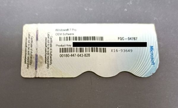 送料無料 OEM キー通知 Windows 7 Pro OA 正規プロダクトキーシール32Bit/64Bit両方適用(認証保証)1