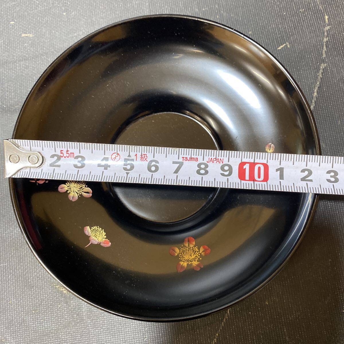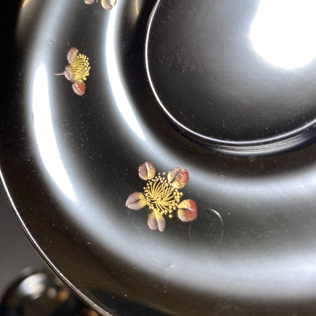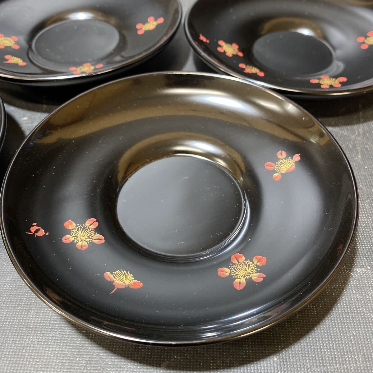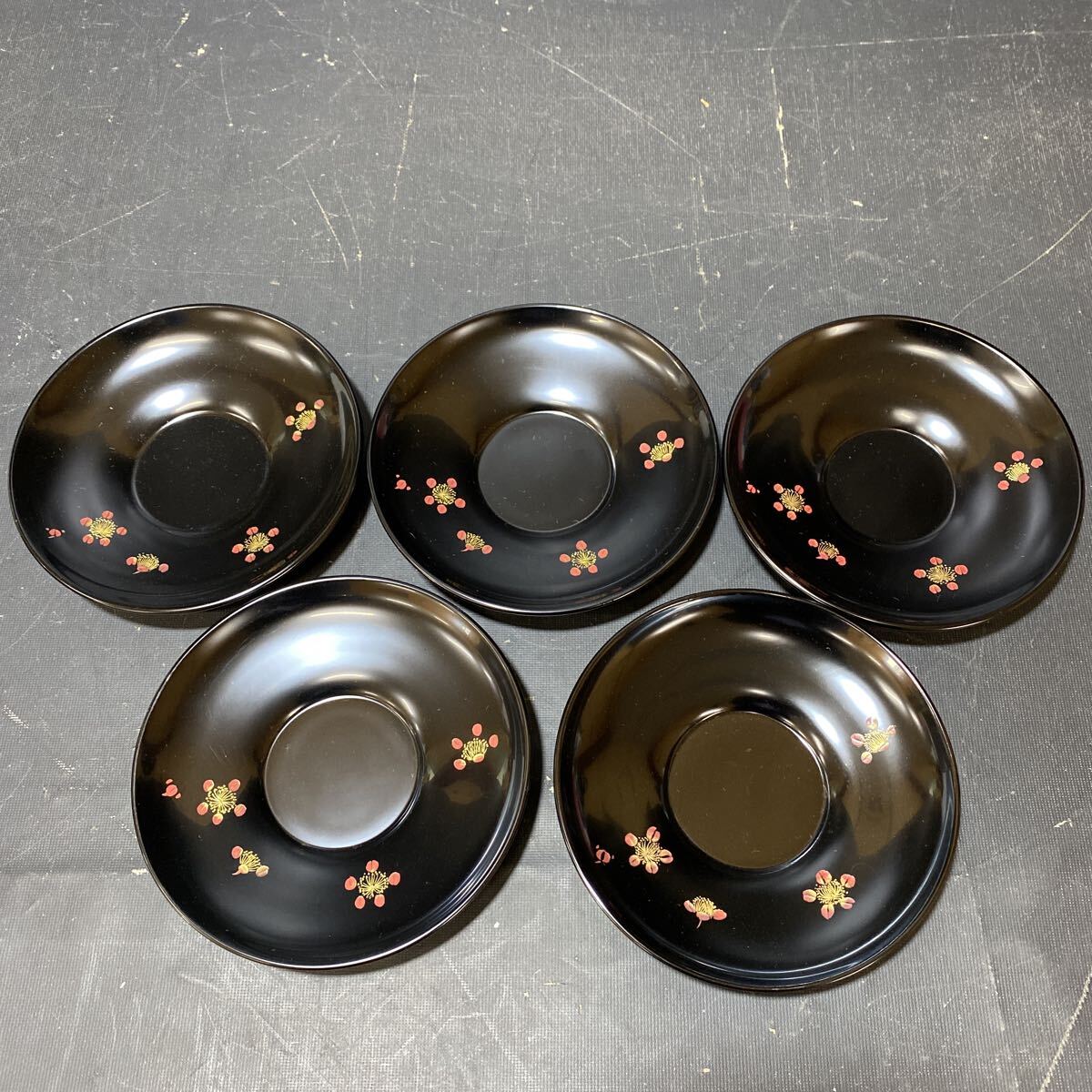 N 6661 [ 輪島塗 茶托 5客セット!] こぼれ梅 銘々皿 木箱入り 供箱 漆黒 沈金 骨董 蔵出し 保管品 美品 茶道具 煎茶